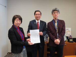 24日 全国手をつなぐ育成会 佐々木会長、又村常務理事から「令和6年 能登半島地震にかかる要望」を伺い、26日開催された「公明党令和6年能登半島地震対策本部」の第6回会議にて発言。政府に求めました。知的障がい者が仮設住宅などに入居する事を想定し、トレーラーハウスや防音など障がいの特性に応じた避難環境の整備を求めました。また被災地から県外に避難した障がい者の寄り添い型の支援も促しました。