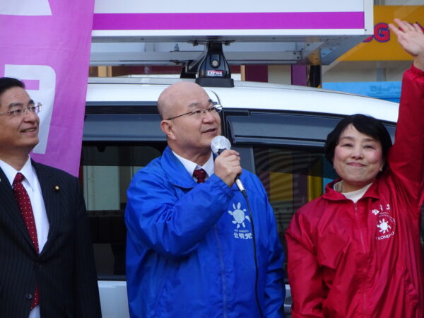 田井県議の司会で進行。市議を代表して春田県政策局長、県を代表して都築県代表の挨拶の後、登壇。