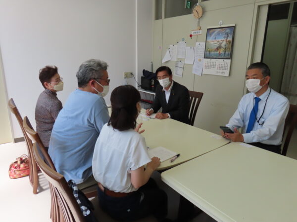 支援を受けている医療的ケア児(まさあき君8歳)の保護者佐伯ご夫妻や支援者である原田訪問看護センター原田典子代表、あてくろ訪問看護ステーション 宮崎俊一郎保健師、中国地区知的障害福祉協会 岩武毅会長と懇談。