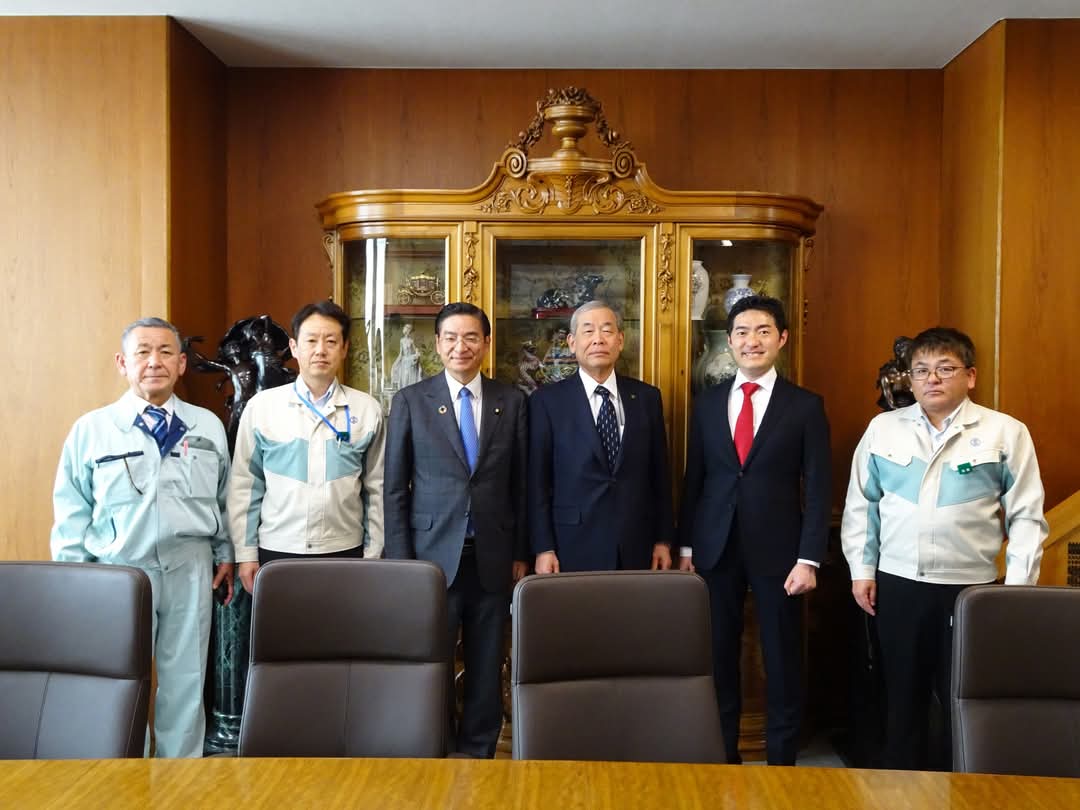 28日午後、愛媛県今治市内の今治造船(株)を訪問。桧垣英史副社長、池田拓也執行役員、石川達雄チーム長と懇談。原田大二郎予定候と今治市渡部豊市議が同行。