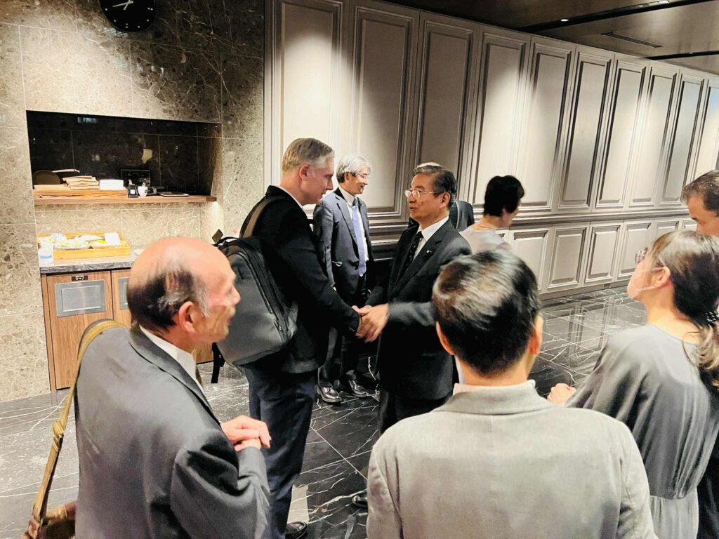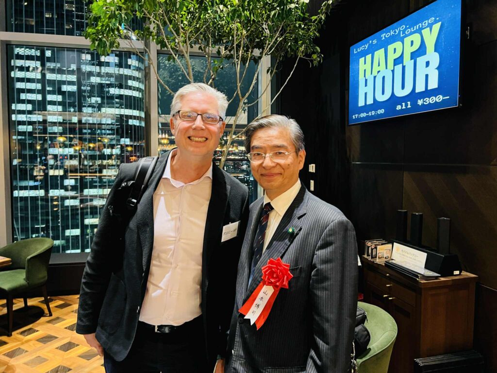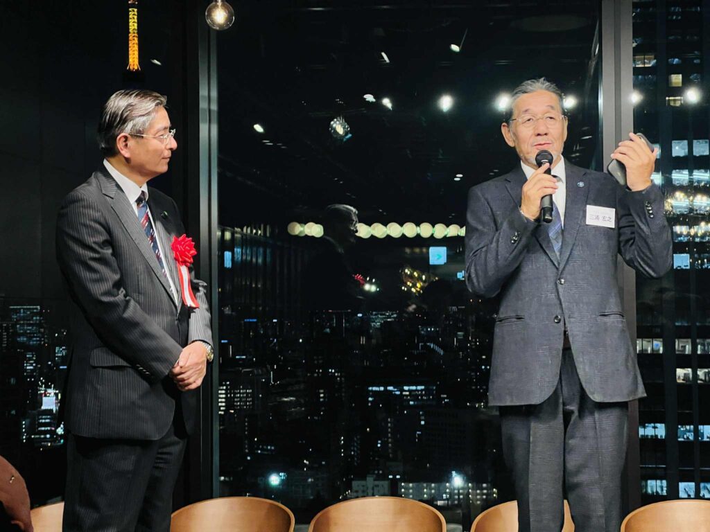 日本IBMの社長・会長だった橋本孝之さん、87歳副会長の後藤健大先輩、現役の伊藤昇専務。親戚のアンソニー・ルナ氏(9月まで日本IBM法務担当常務)大阪から参加の大石憲司さん(EMシステムズ会長)。また現職の山口明夫社長も会場に駆けつけていただき、挨拶いただきました。