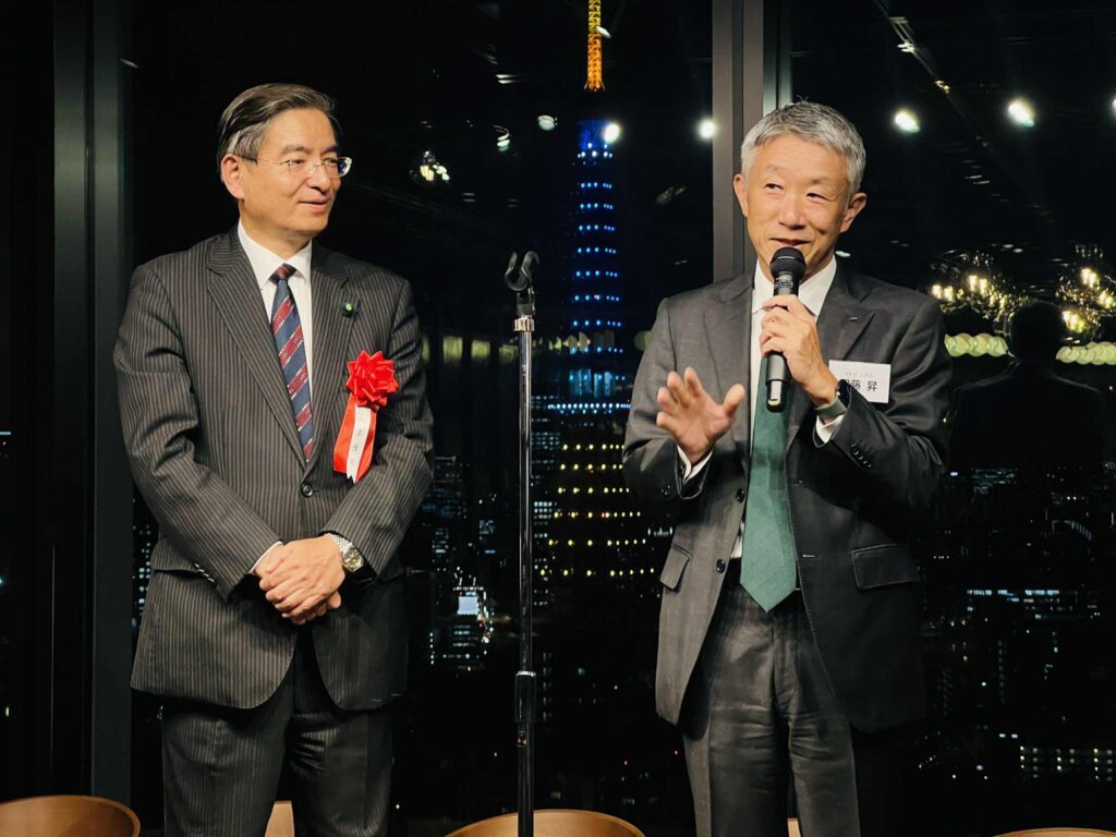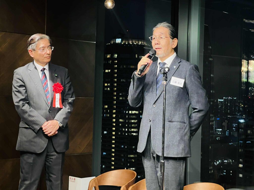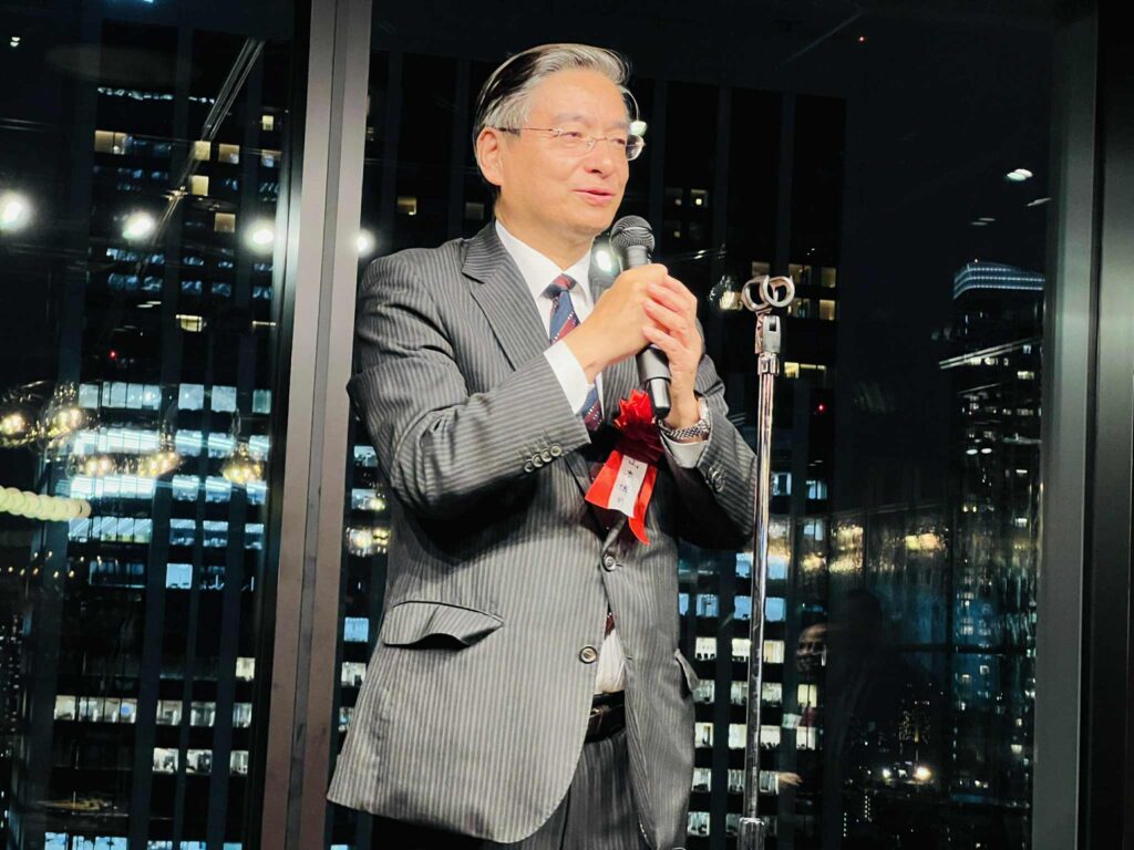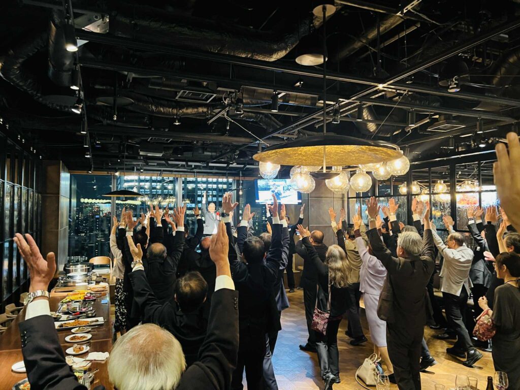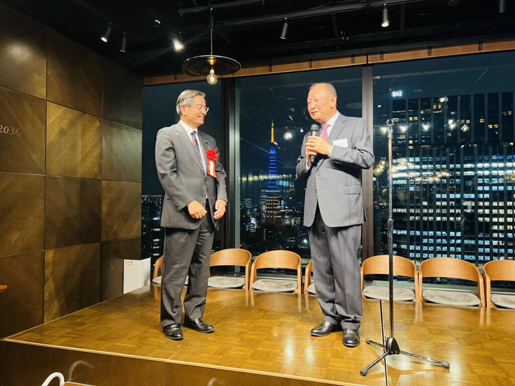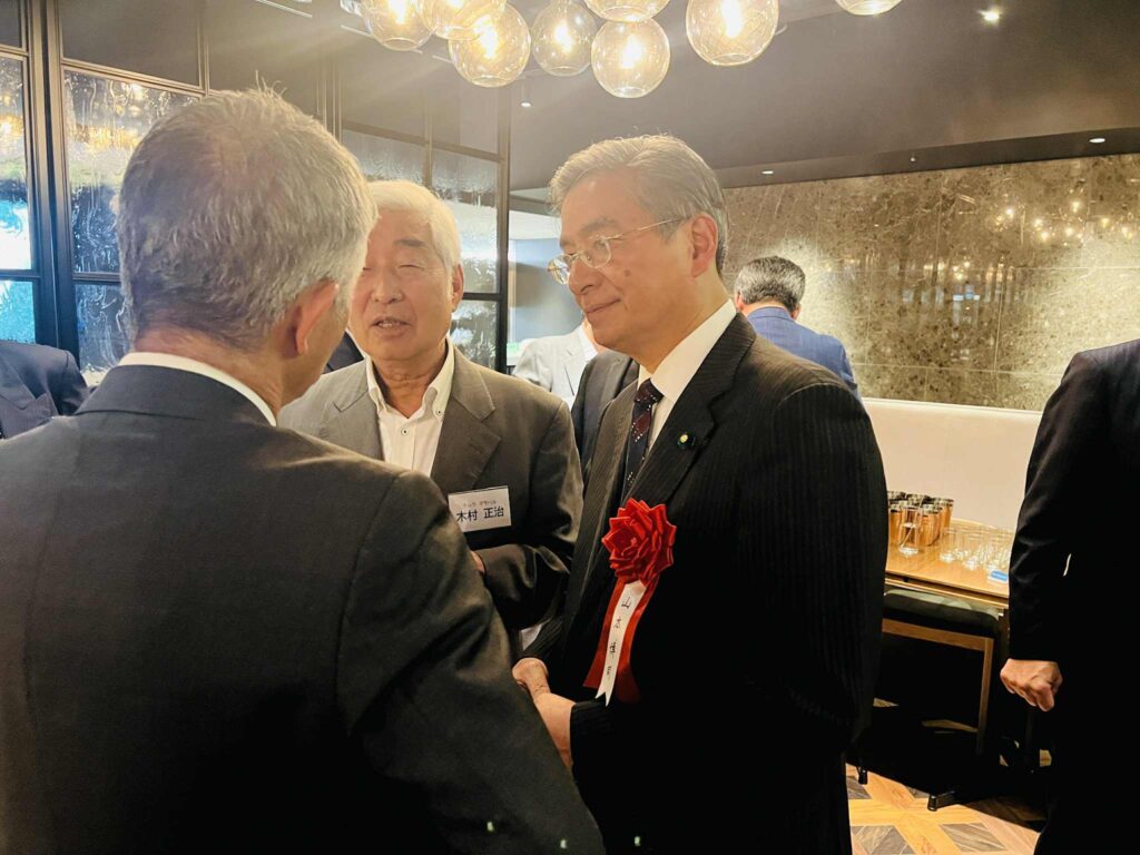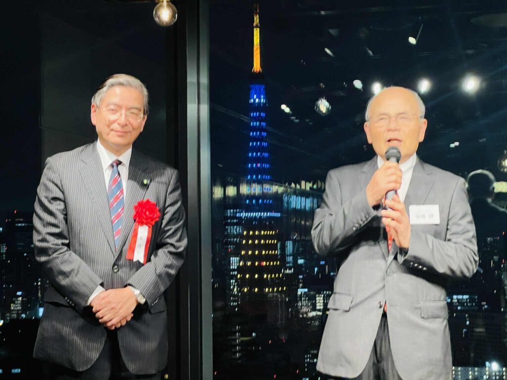 4人の発起人の方々の思いのこもった開会挨拶の後、日本IBM社長・会長を歴任された慶應大学の先輩 北城恪太郎 元経済同友会 代表幹事から乾杯の挨拶。参議院候補になった2006年当時の神崎代表がIBM本社を訪問されたエピソード等話していただきました。
