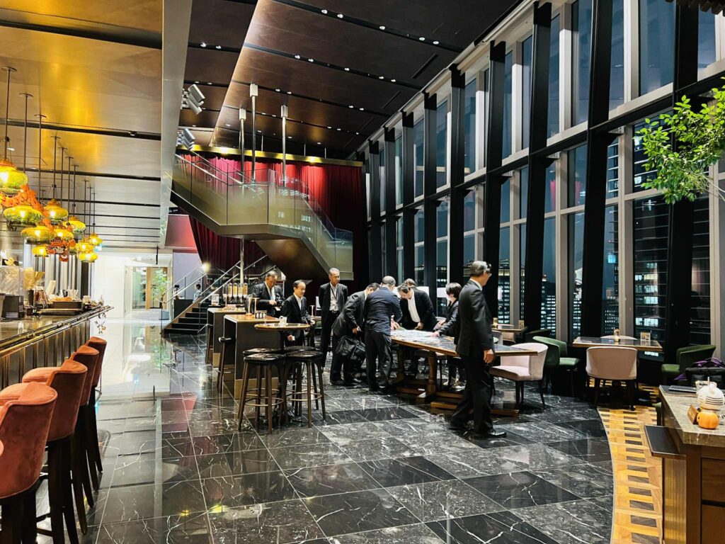 今回の会場は発起人の牧田さんの会社の「Lucy’s CAFE & DINING」(ルーシーズ)。日本一の社員食堂ともいわれ、東京タワーを背景の夜景が素晴らしい場所でした。