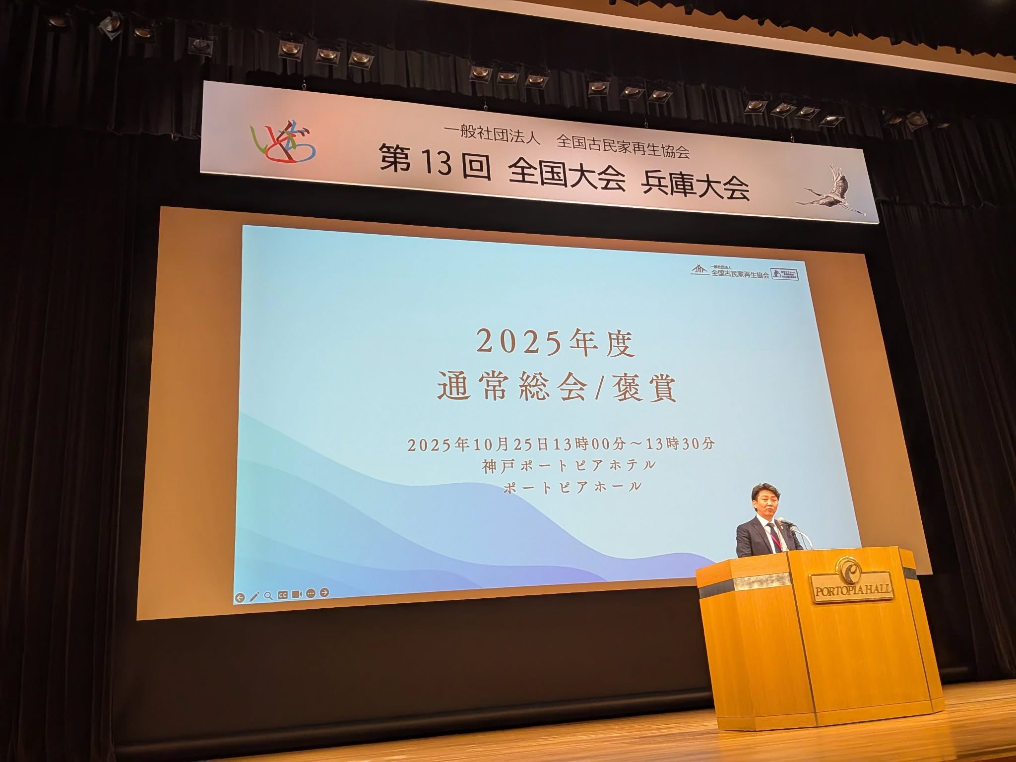 「一般社団法人 全国古民家再生協会 第13回 全国大会兵庫大会」が25日兵庫県神戸市で開催。3日間の大会の2日目のイベント、通常総会、式典が開催。