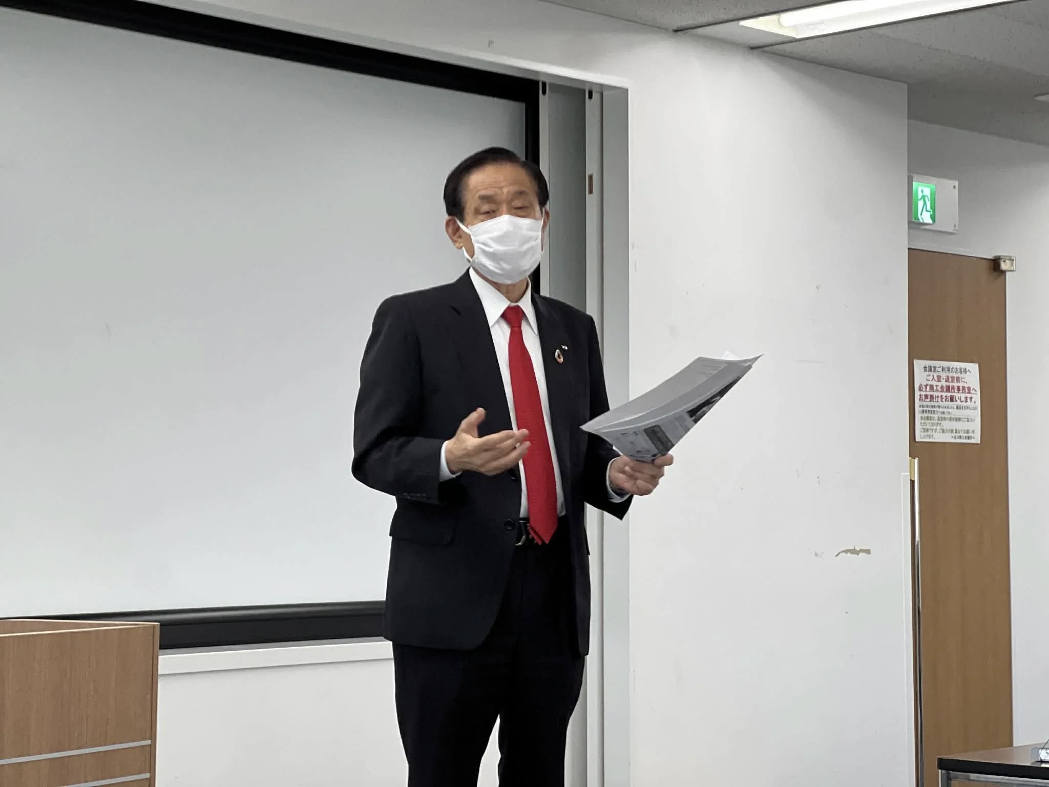 交流会では、最初に 飯田会長の開会挨拶の後、下記内容の講演などが行われました。司会は日本ヴェルダシステム株式会社 田中清次郎社長。