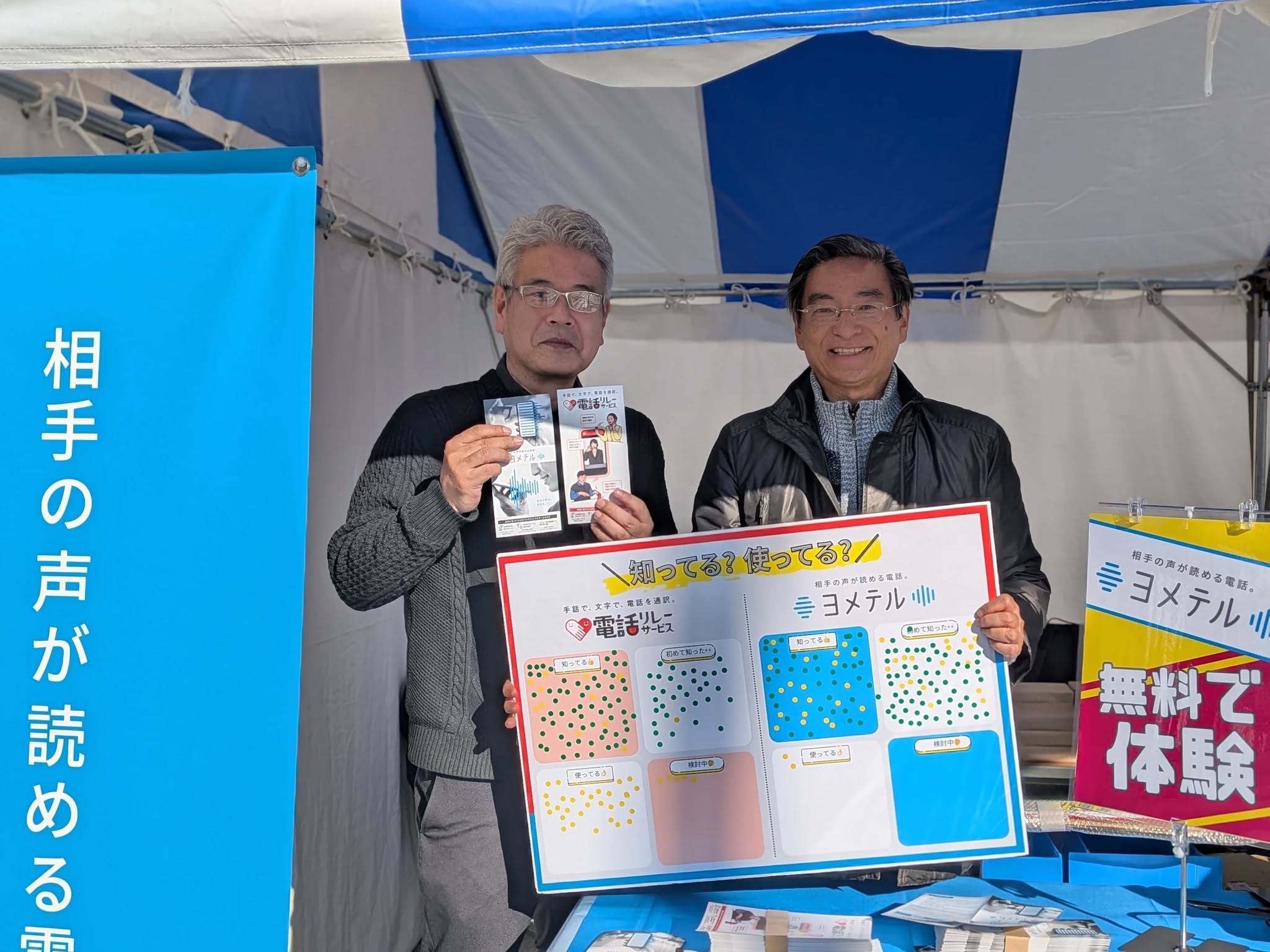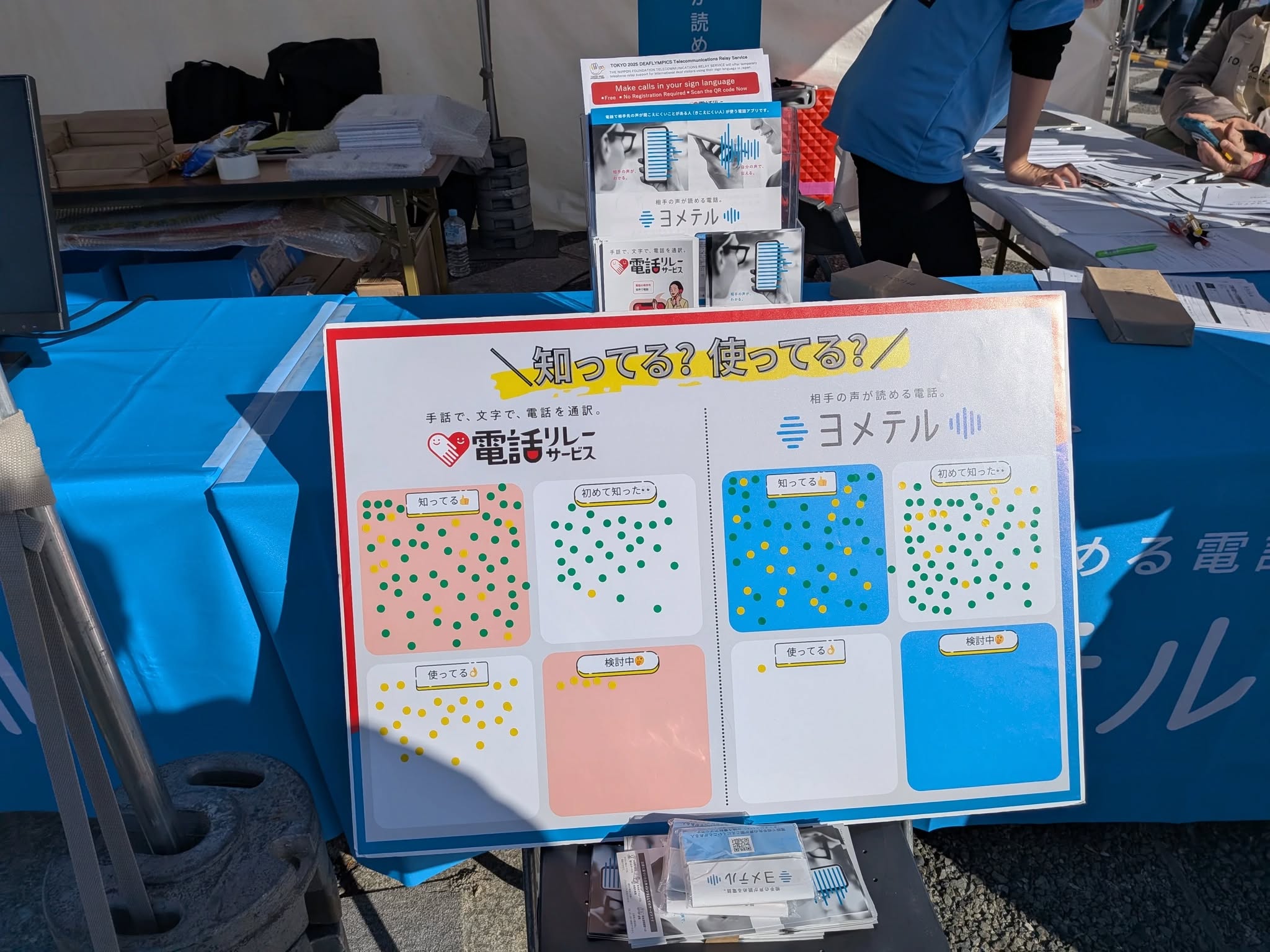 認知度は電話リレーサービスは30%。ヨメテルは14%とまだまだ知られていません。啓発の一環で今回も出展されています。