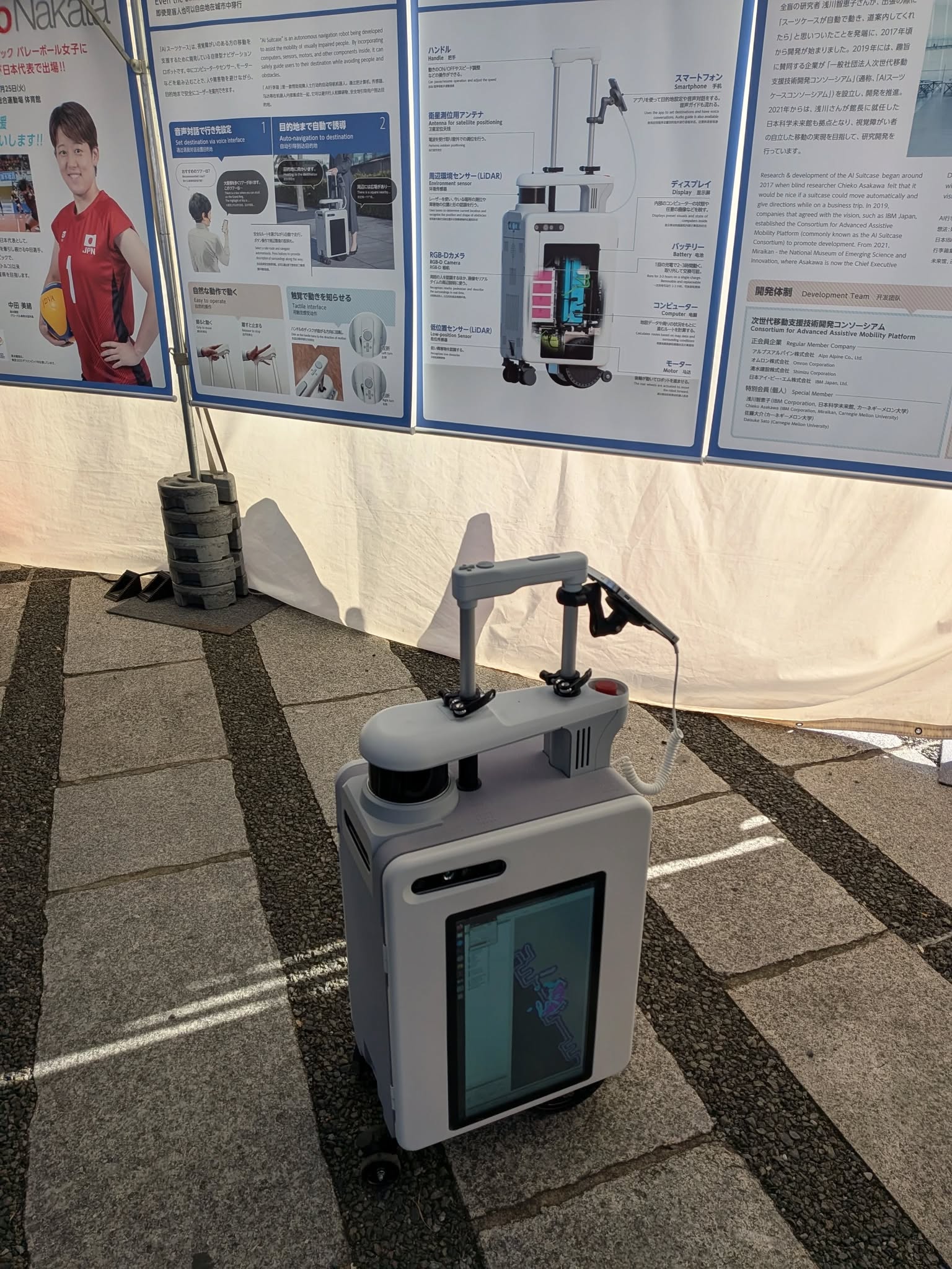 他に視覚の障害のある方の移動を支援するロボットAIスーツケースも出展されていました。
