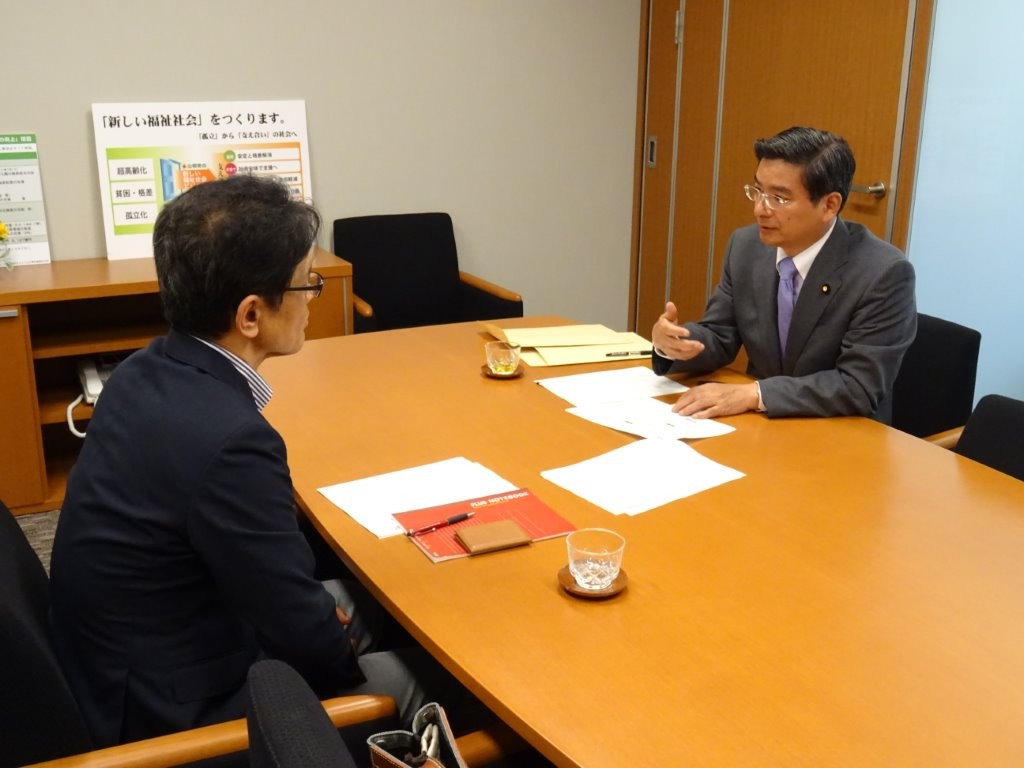 6日午前、国会 原田大二郎事務所にて、日本財団 公益事業部 シニアオフィサー 竹村利道氏と懇談。「NPO法人輝HIKARI」金子訓隆代表理事が同席。