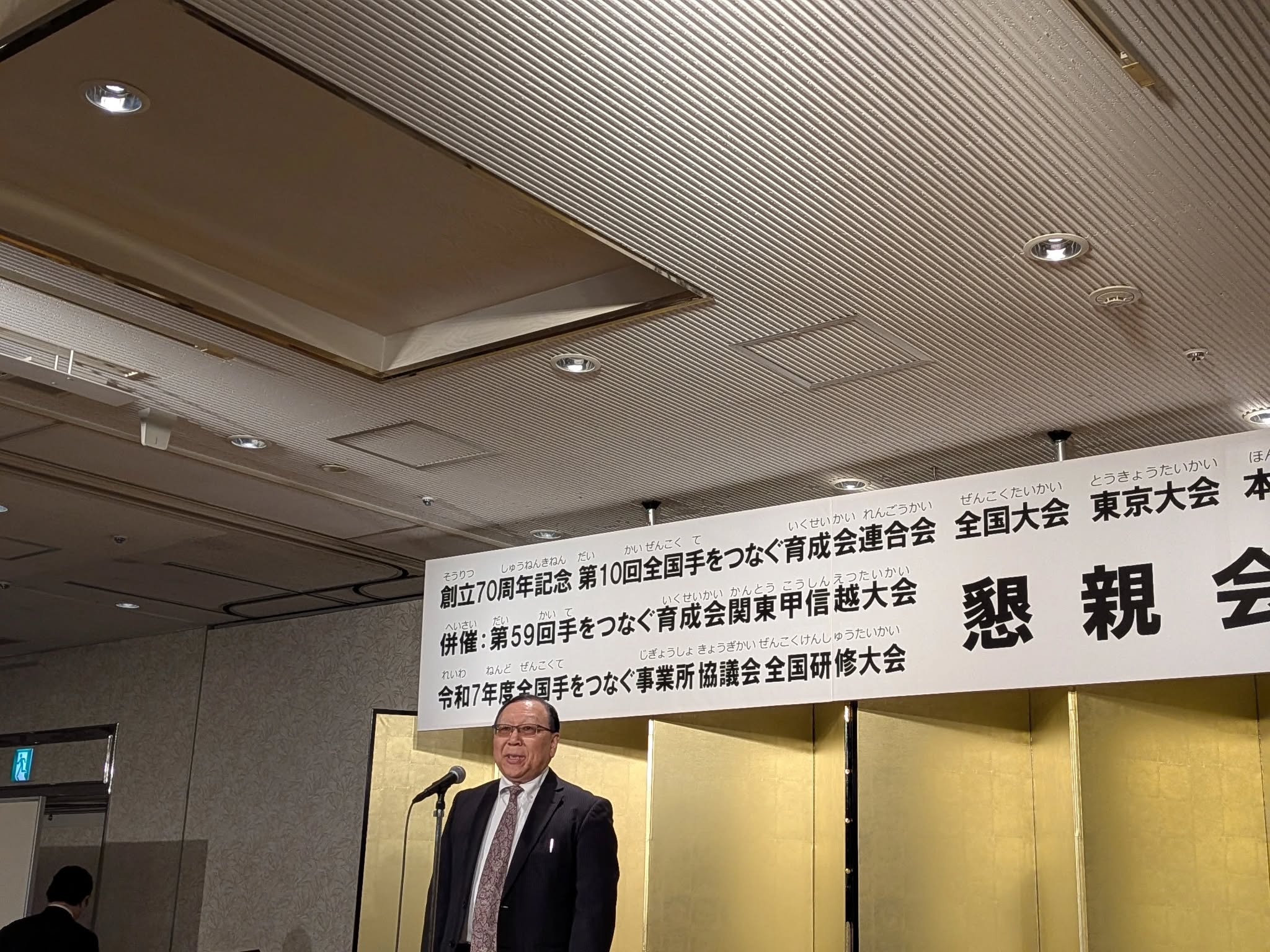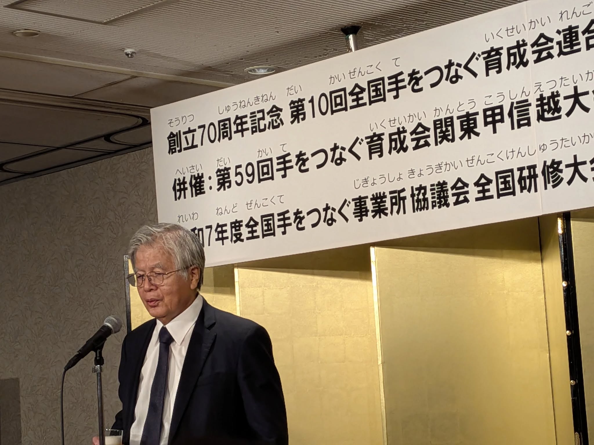 「創立70周年の全国大会の開催。誠におめでとうございます。この7月28日。3期18年続けた議員を勇退させていただきました。手をつなぐ育成会の皆様には大変感謝申し上げます。