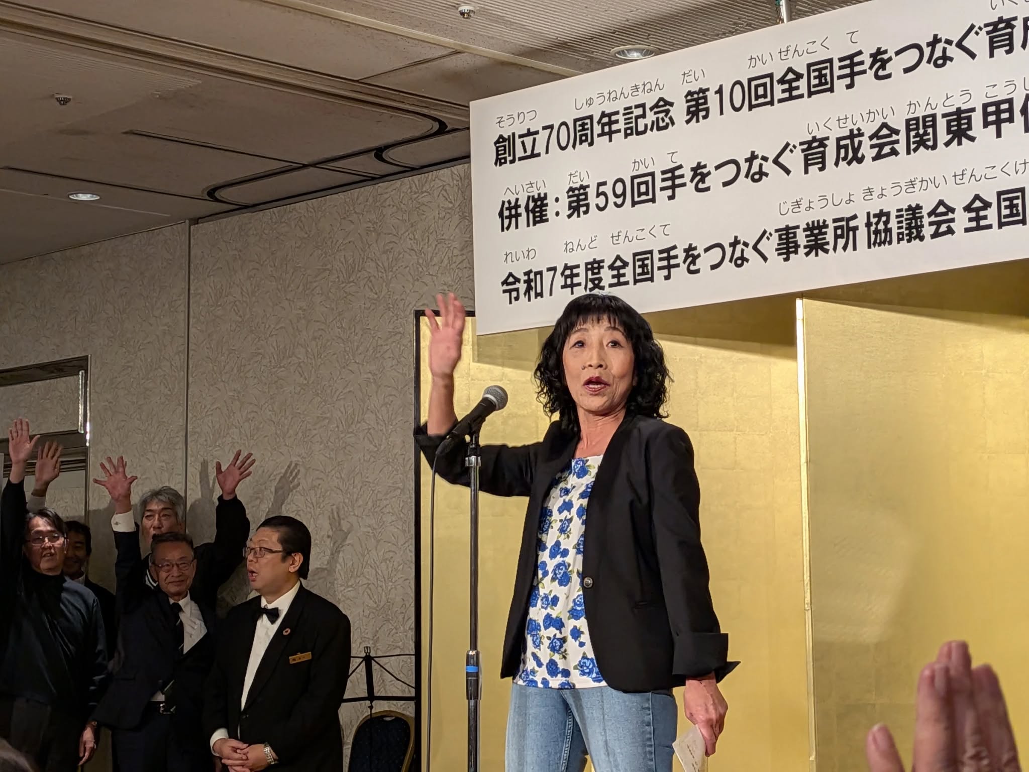 全国手をつなぐ育成会連合会全国大会の次回開催地は兵庫県神戸市。後藤久美子会長から力強い挨拶。