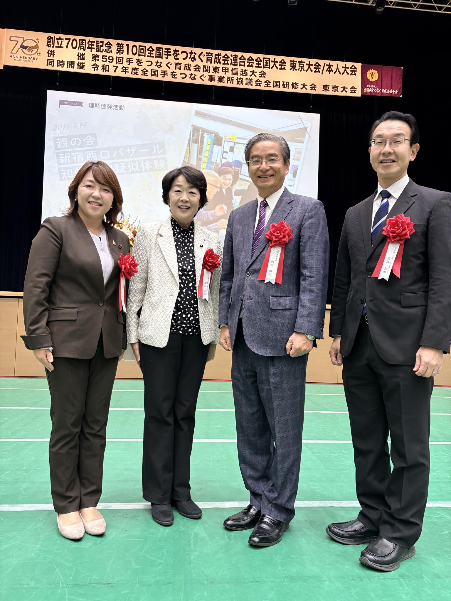 全国手をつなぐ育成会連合会の佐々木桃子会長、5人の大会副会長(小島幸子・大谷喜博・西恵美・小出隆司・立原麻里子)久保厚子顧問。また公明党3人の太田区議と記念の写真を夫々撮らせていただきました。