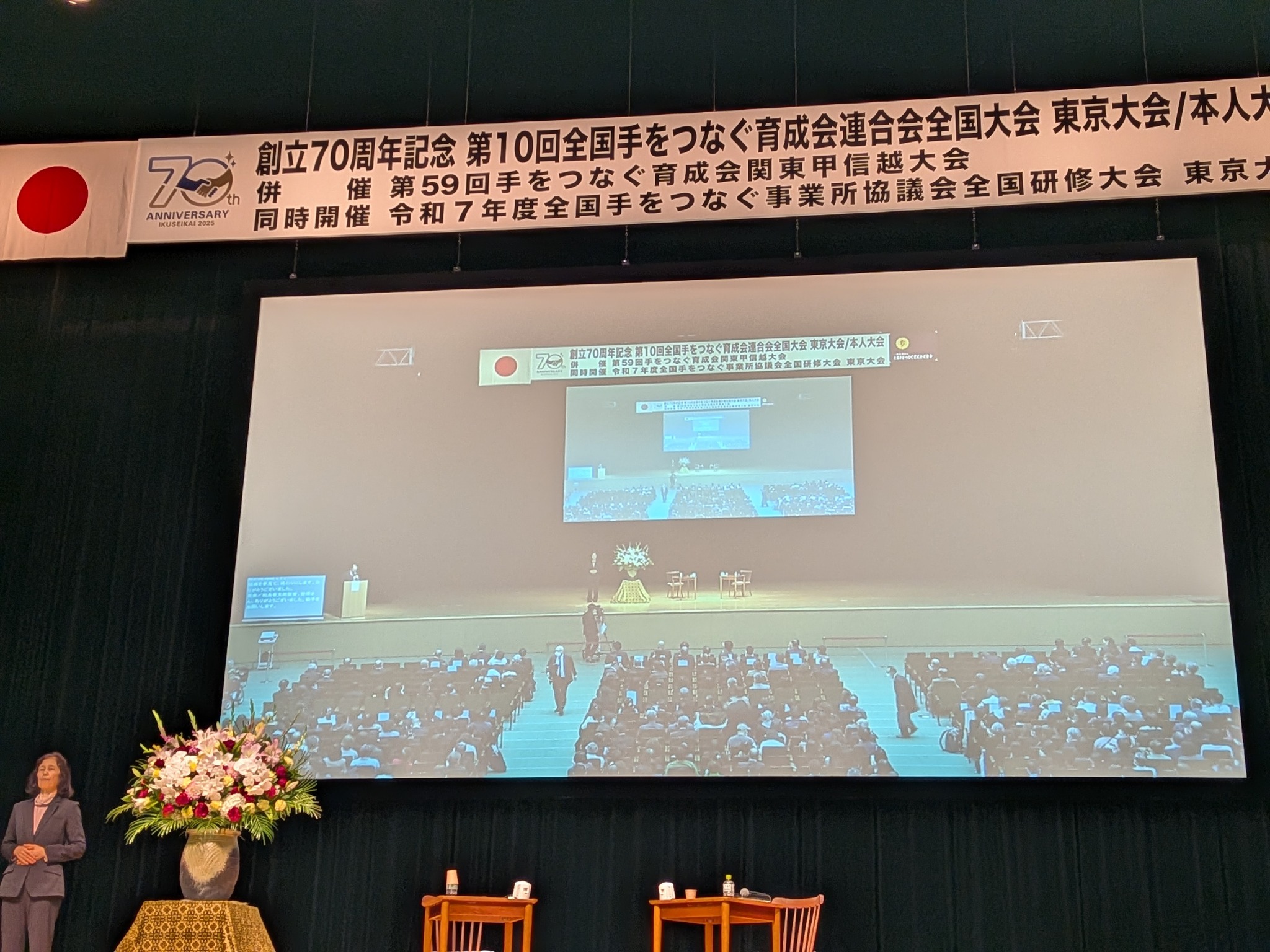 創立70周年記念大会「第10回全国手をつなぐ育成会連合会 全国大会東京大会/本人大会」が11月8日、9日大田区で開催されました。昨日に引き続き、来賓として9日も終日出席しました。