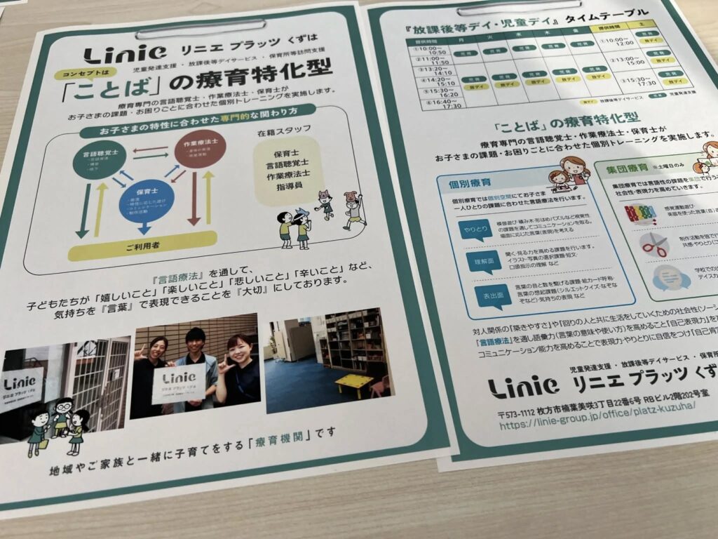 当事業所は、「リニエプラッツ枚方」が困難だった枚方市中部・北部地域「くずは」方面のお子様・保護者様の「ことばの療育」を求める声にお応えしたく誕生した「枚方市第2号」の施設。