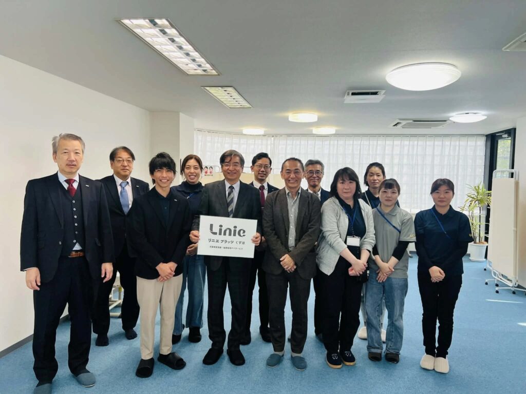 (株)リニエ 谷隆博社長、株)三輪書店 青山智社長(リニエR社長)、藤田康雄取締役、長瀬正幸サービス本部本部長、中野伸也「リニエプラッツ くずは」管理者、京都橘大学 高畑進一教授が同席。