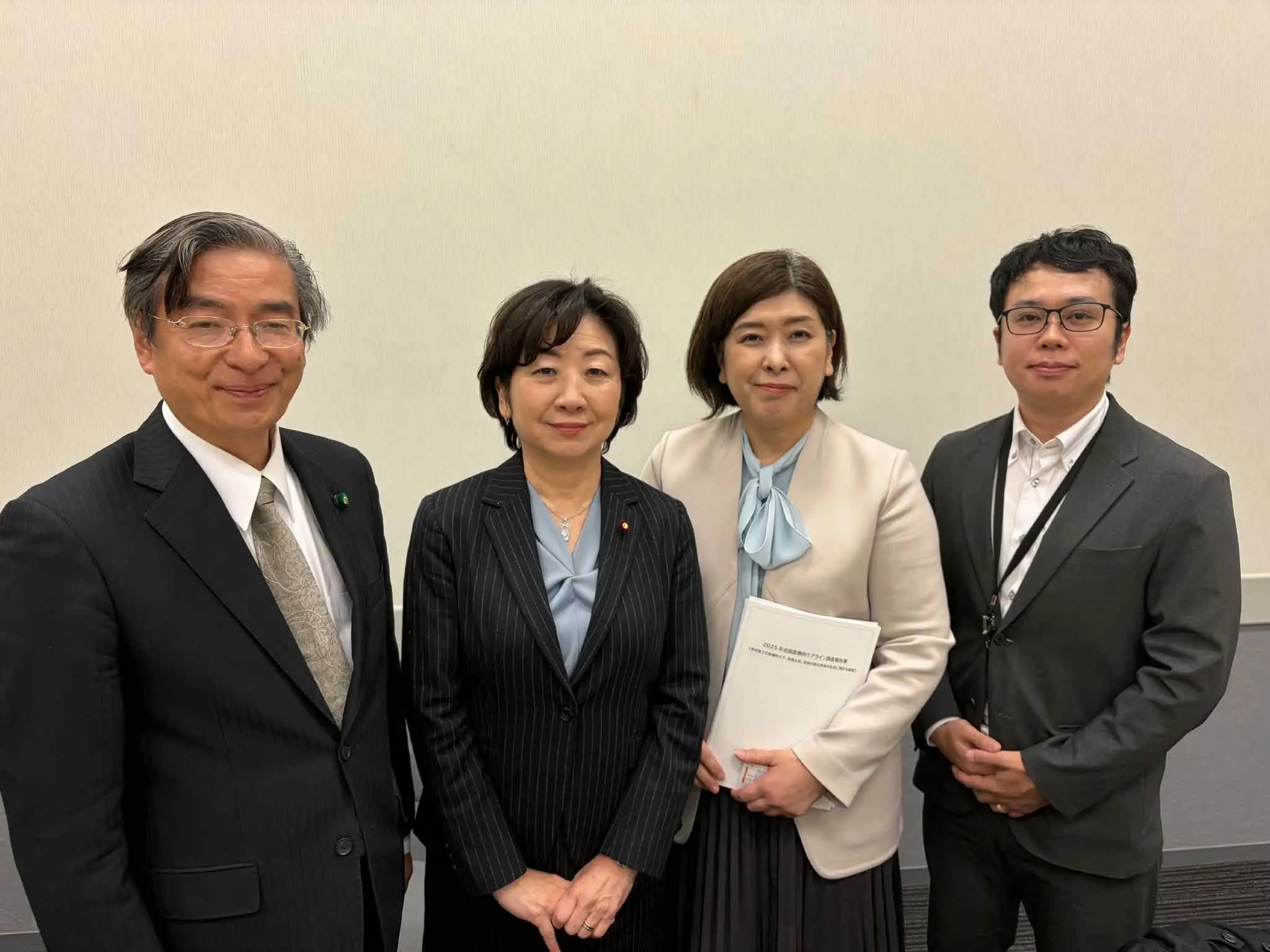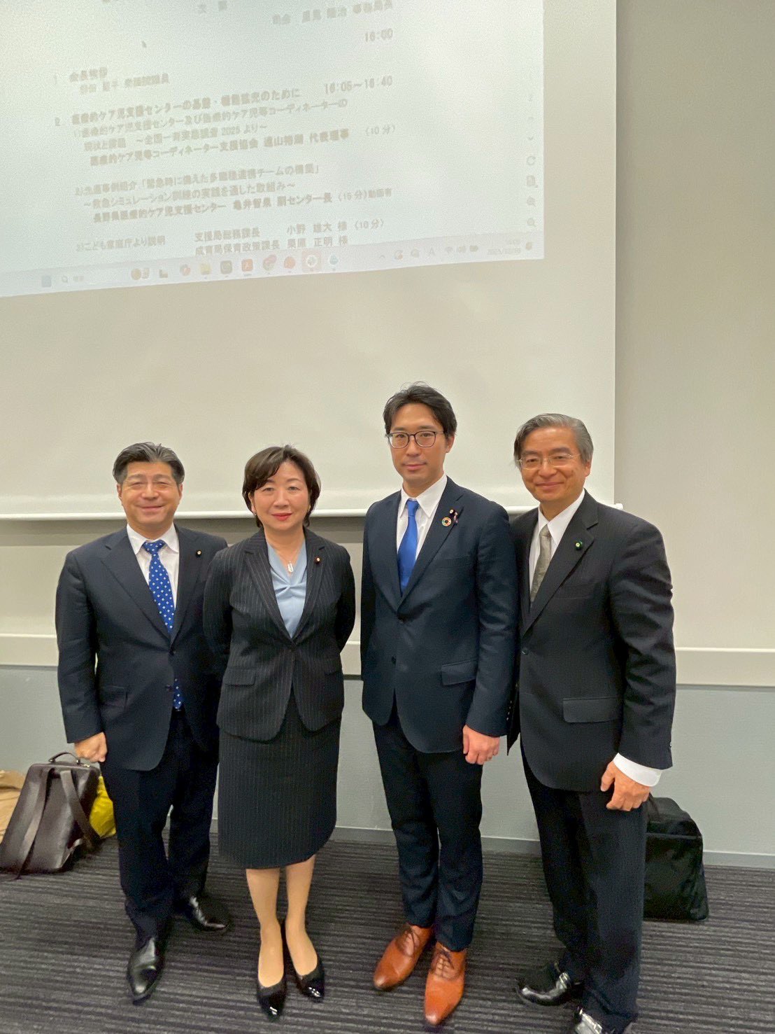 終了後、広島県から参加されていた 全国医療的ケアライン(アイライン) 村尾晴美 代表らと野田会長と記念の写真も撮らせていただきました。。