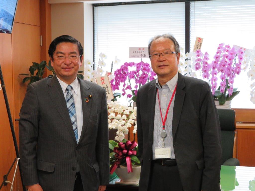 2018年には沖縄本社を訪問。2020年副大臣室に来訪されており、ずっと交流を続けています。