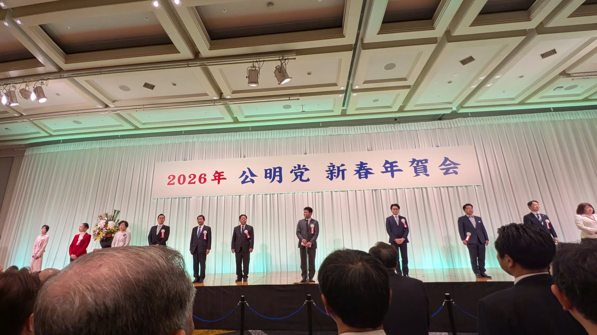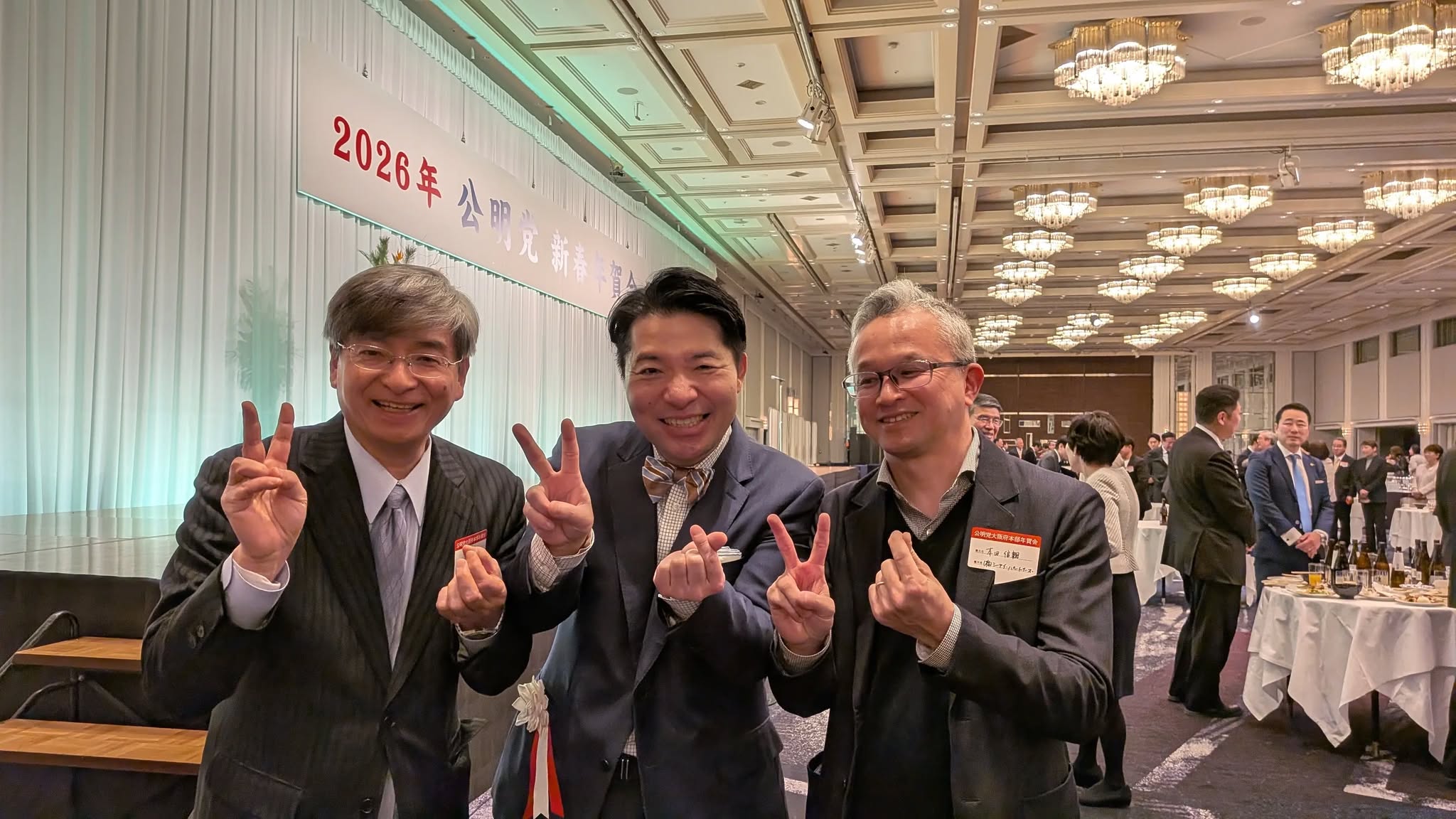 17日、大阪市内にて「2026年公明党新春年賀会」が盛大に開催。大阪本社の顧問先(株)シー・アイ・パートナーズ本田信親専務CEOと共に初参加。約1800名を超える参加者の熱量に圧倒されました。