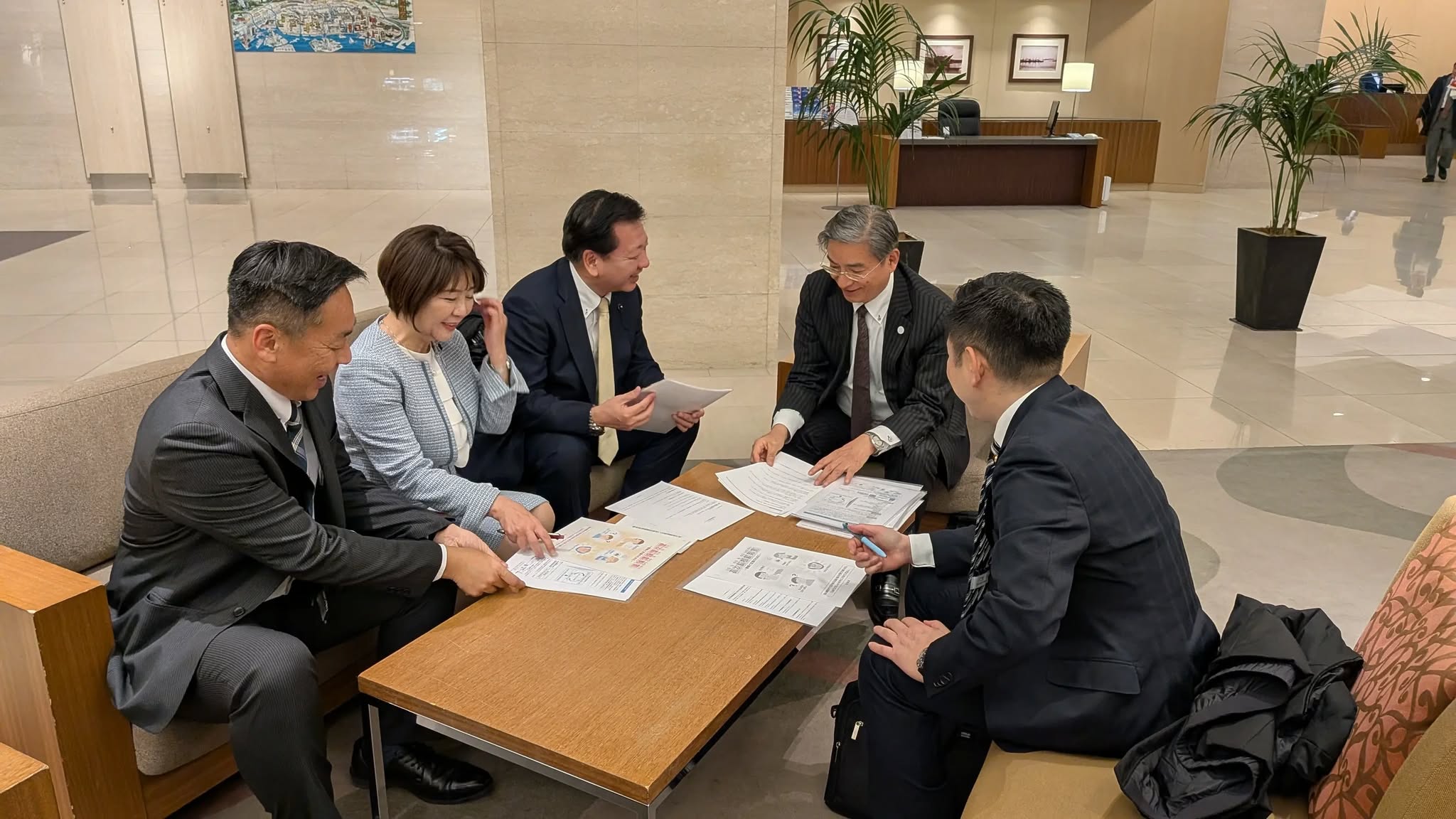 8日、公明党兵庫県本部新春年賀会終了後、公明党兵庫県本部の谷井勲・里見たかえ両兵庫県議、重久大学西宮市議、前田伸一郎伊丹市議らと「『高次脳機能障害支援法』成立後の地方議会での取組みについて」意見交換しました。