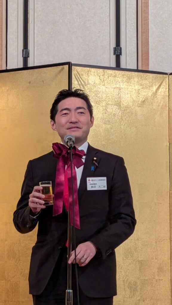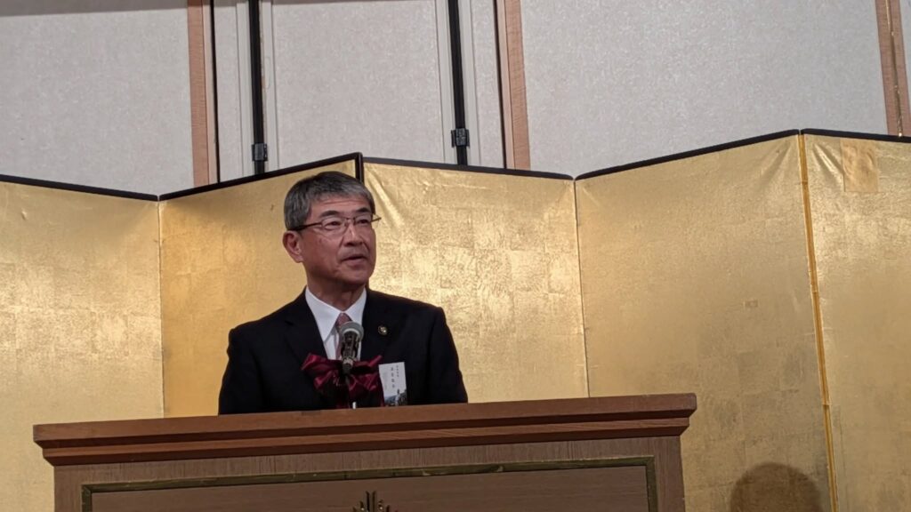 また来賓の濱田省司高知県知事から祝辞。そして乾杯の音頭は原田大二郎参議院議員。