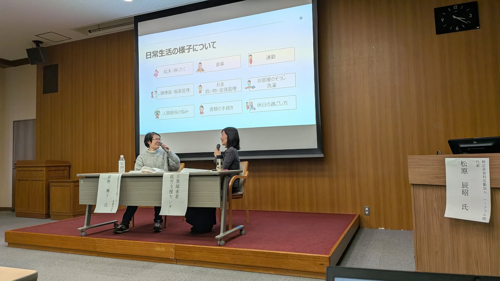 障がいのある方が地域で自立した生活を送るためには健康面や金銭的、人間関係等多くの課題があります。働きながら、自分らしい自立に向かう一助になればと今回の講演会が企画されました。