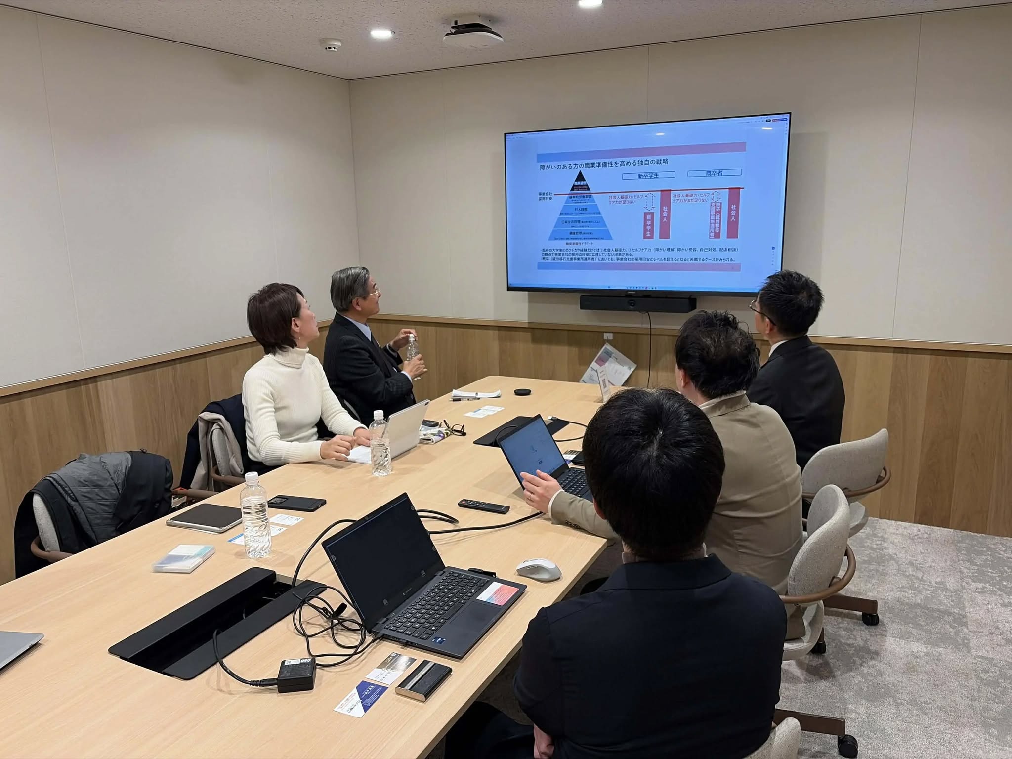 藤本雄社長、吉野正利取締役オフィスセンター事業本部長、守屋優DEIソリューション事業部長から「障がい者雇用の取り組みと今後について」伺い、意見交換。