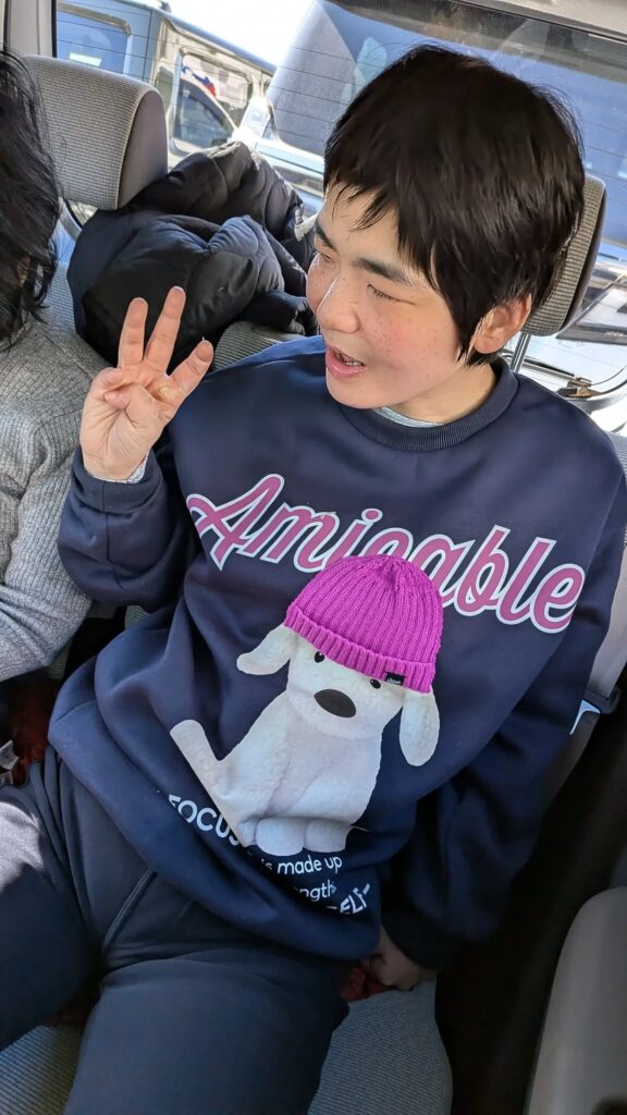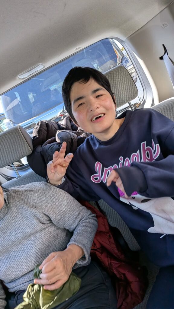 長男の運転でのドライブ。娘の喜ぶ音楽をスマホから流します。妻の大好きなSnow Manの「カリスマックス」も何度も流します。車の中での食事。娘の笑顔に心癒されます。