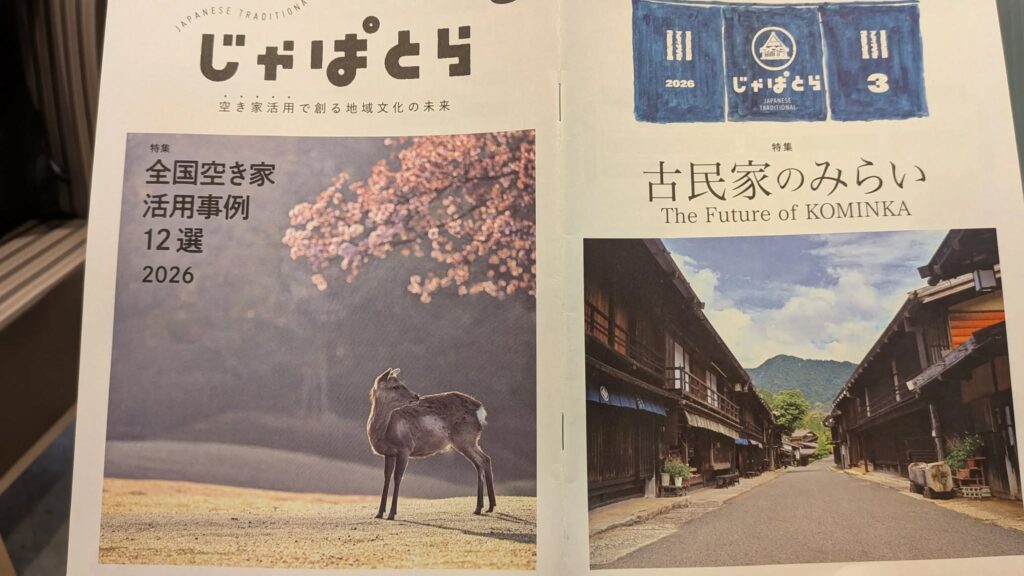 今月号の特集下記内容。表は、「全国空き家活用事例12選2026」。裏は、「古民家のみらい」