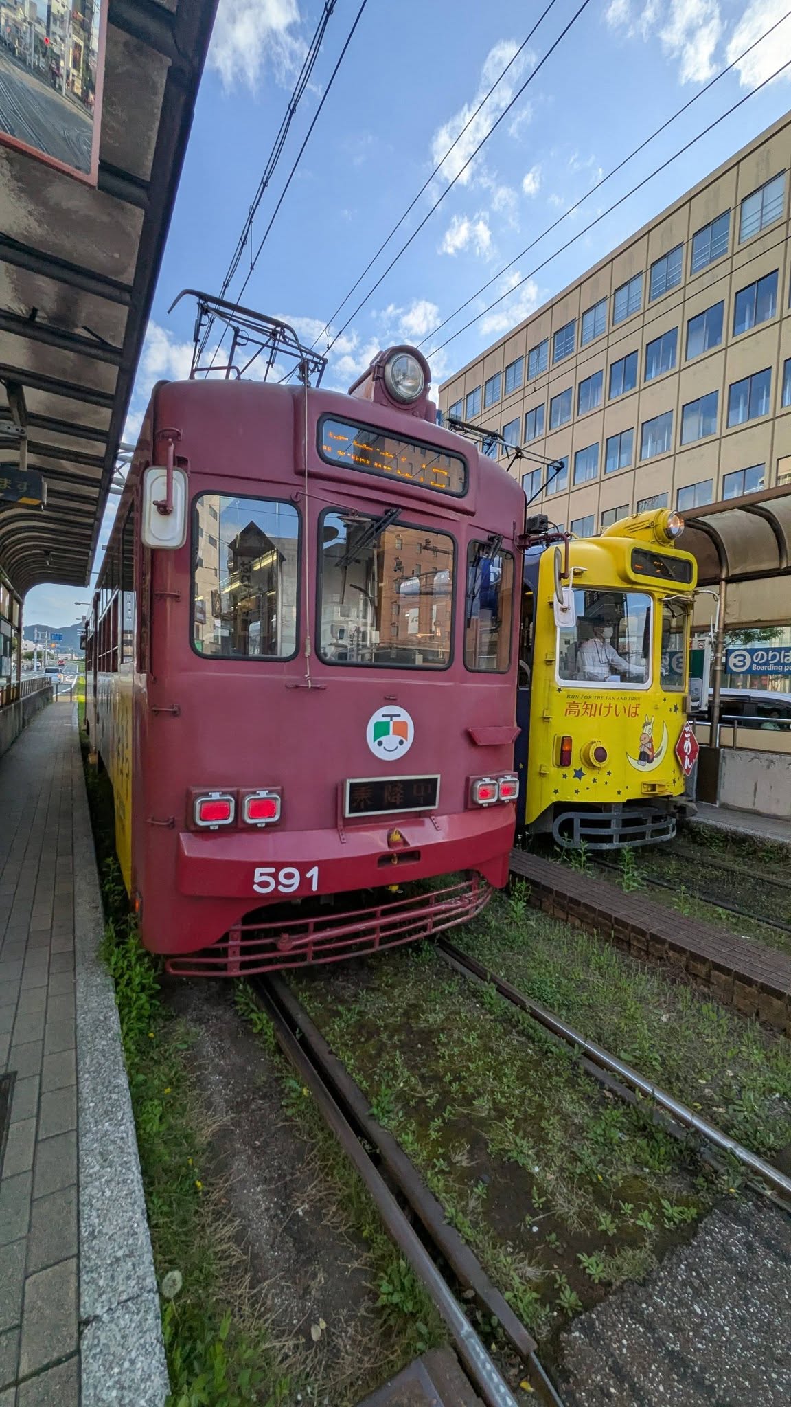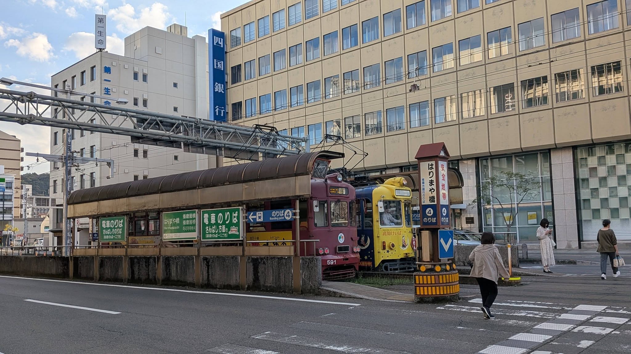 路面電車「とさでん交通」に乗り、はりまや橋へ。1904年開業の日本で最も古い歴史をもつ路面電車に初めての乗車です。ワクワク感満載です。