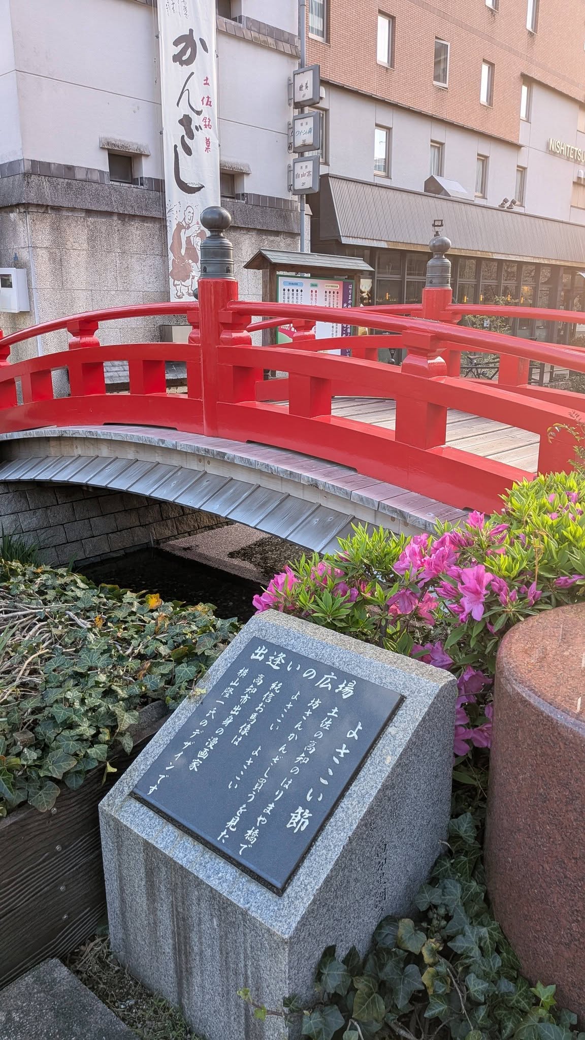 よさこい節で有名となった朱塗りのはりまや橋。近くの橋公園の満開の桜。川のせせらぎとのコントラストが心癒されます。