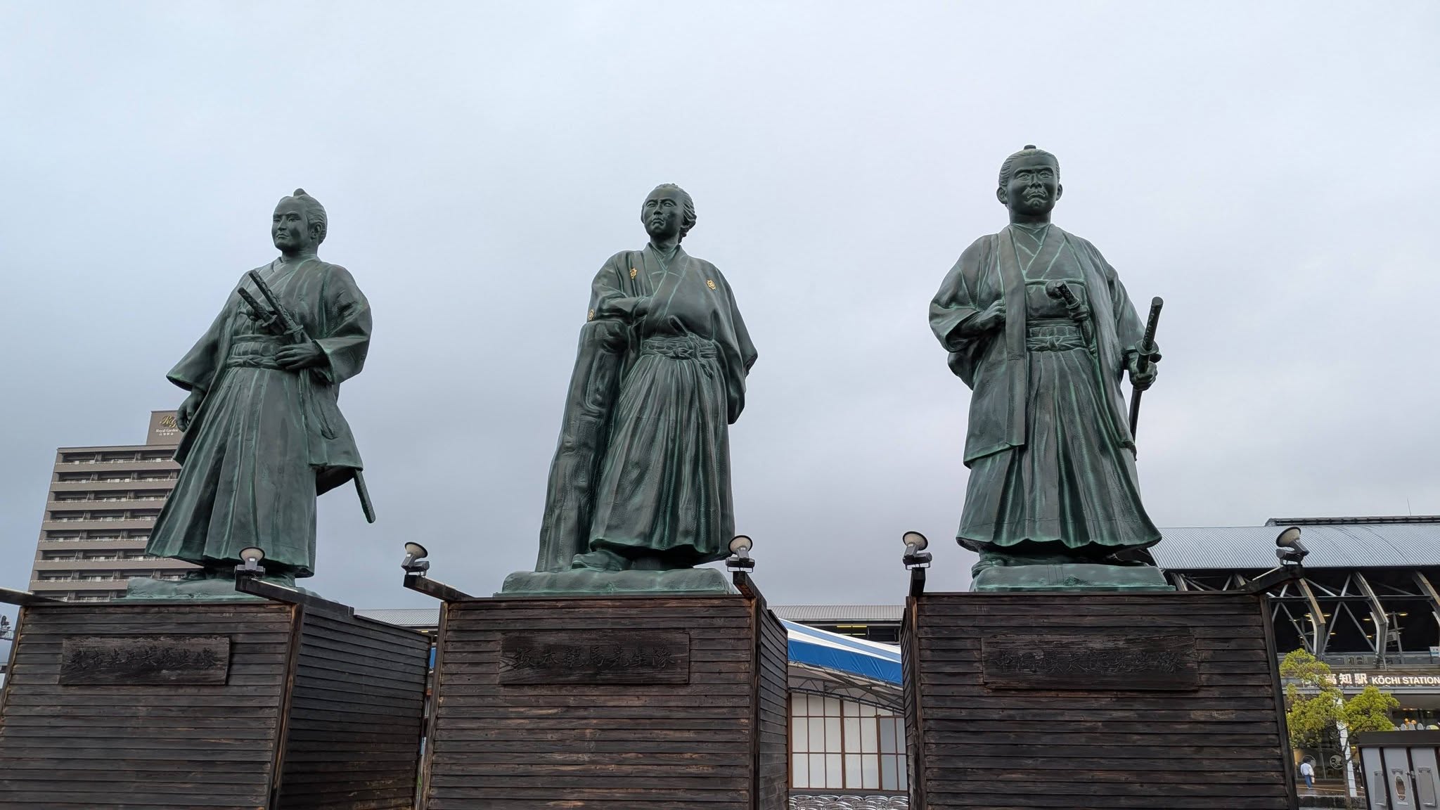 日本の近代国家への第一歩に大きく尽力した、幕末の志士、武市半平太、坂本龍馬、中岡慎太郎の銅像が堂々と並び一段と大きく見えました。