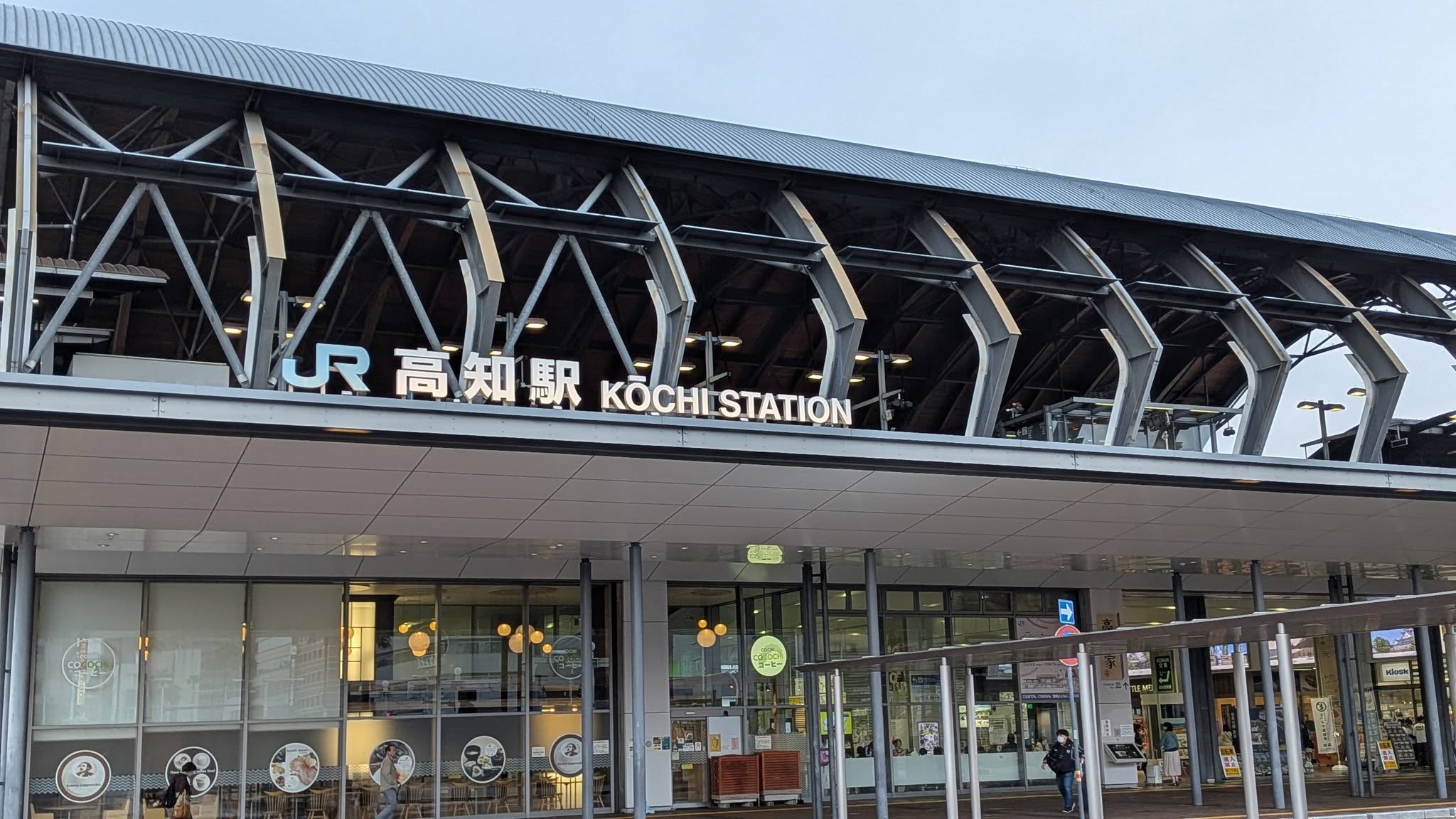 祈るような思いで飛行機に乗っていましたが、何とか無事到着。雨の降りしきる中、高速バスでJR高知駅へ。
