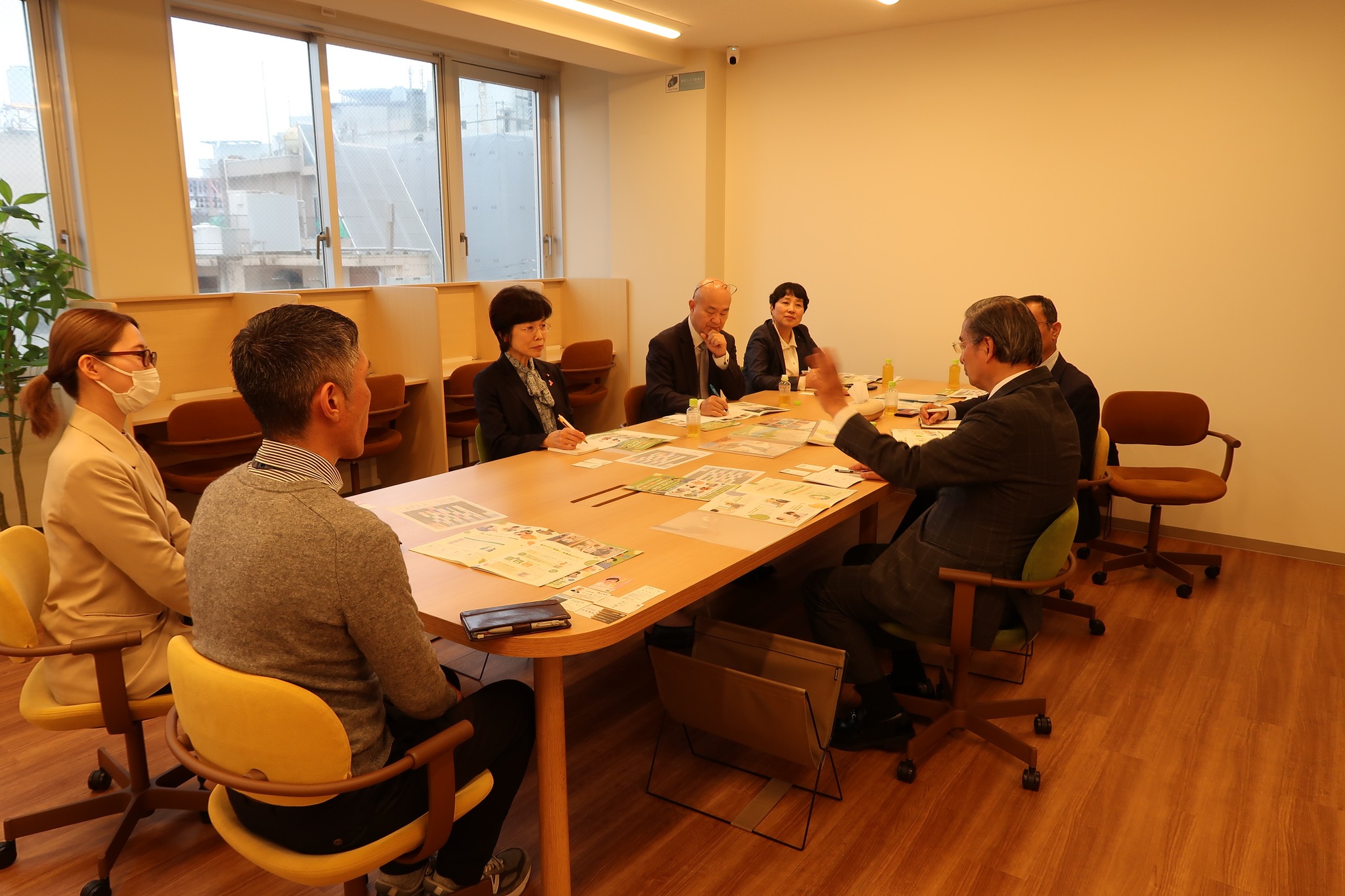 第1エリア部小川裕人マネージャー・山崎詩センター長から就労移行支援事業の概要を伺い、意見交換。