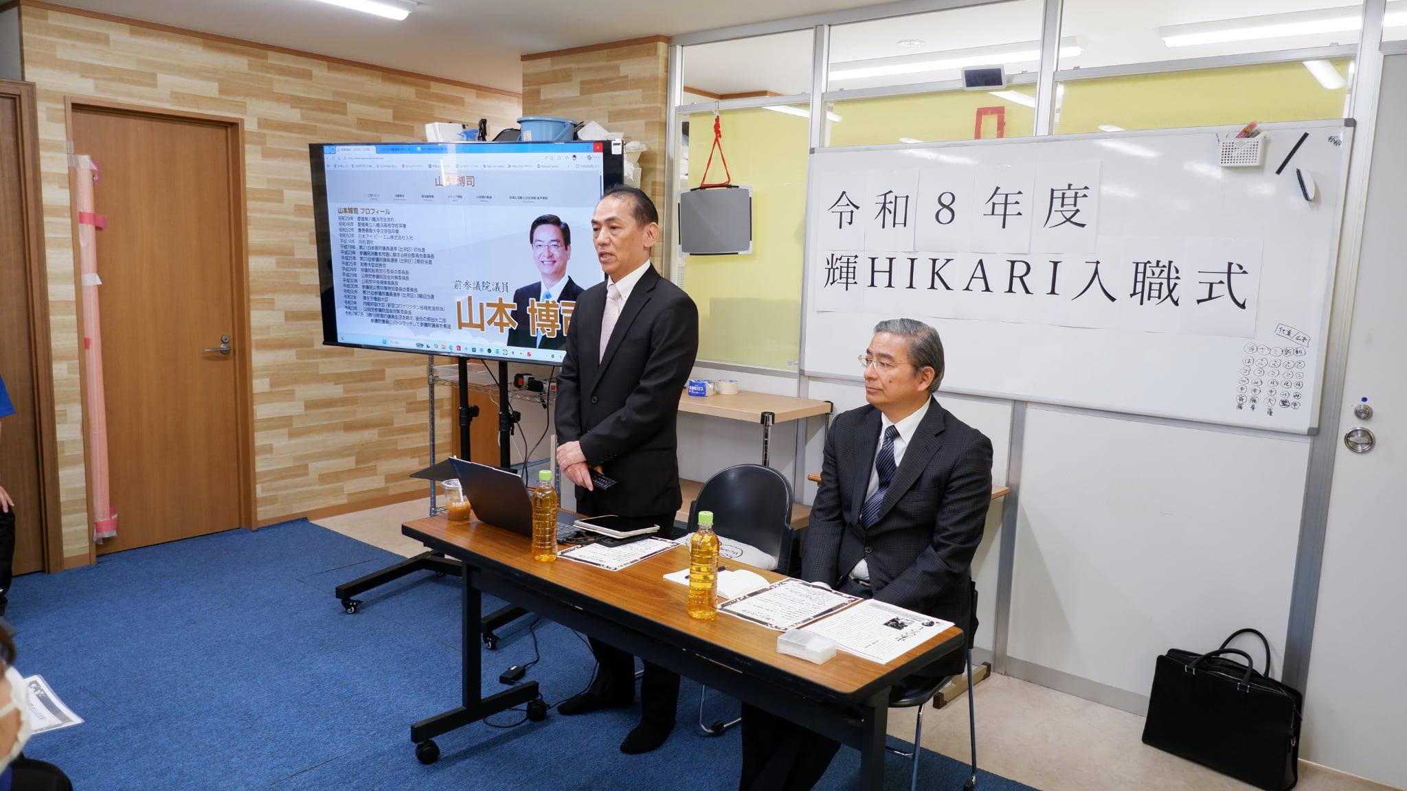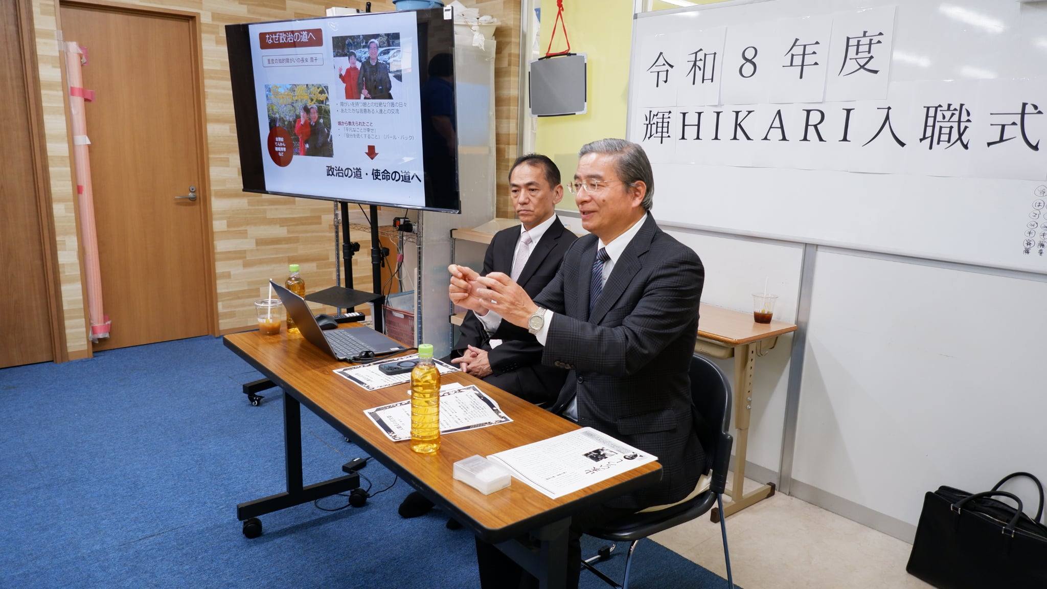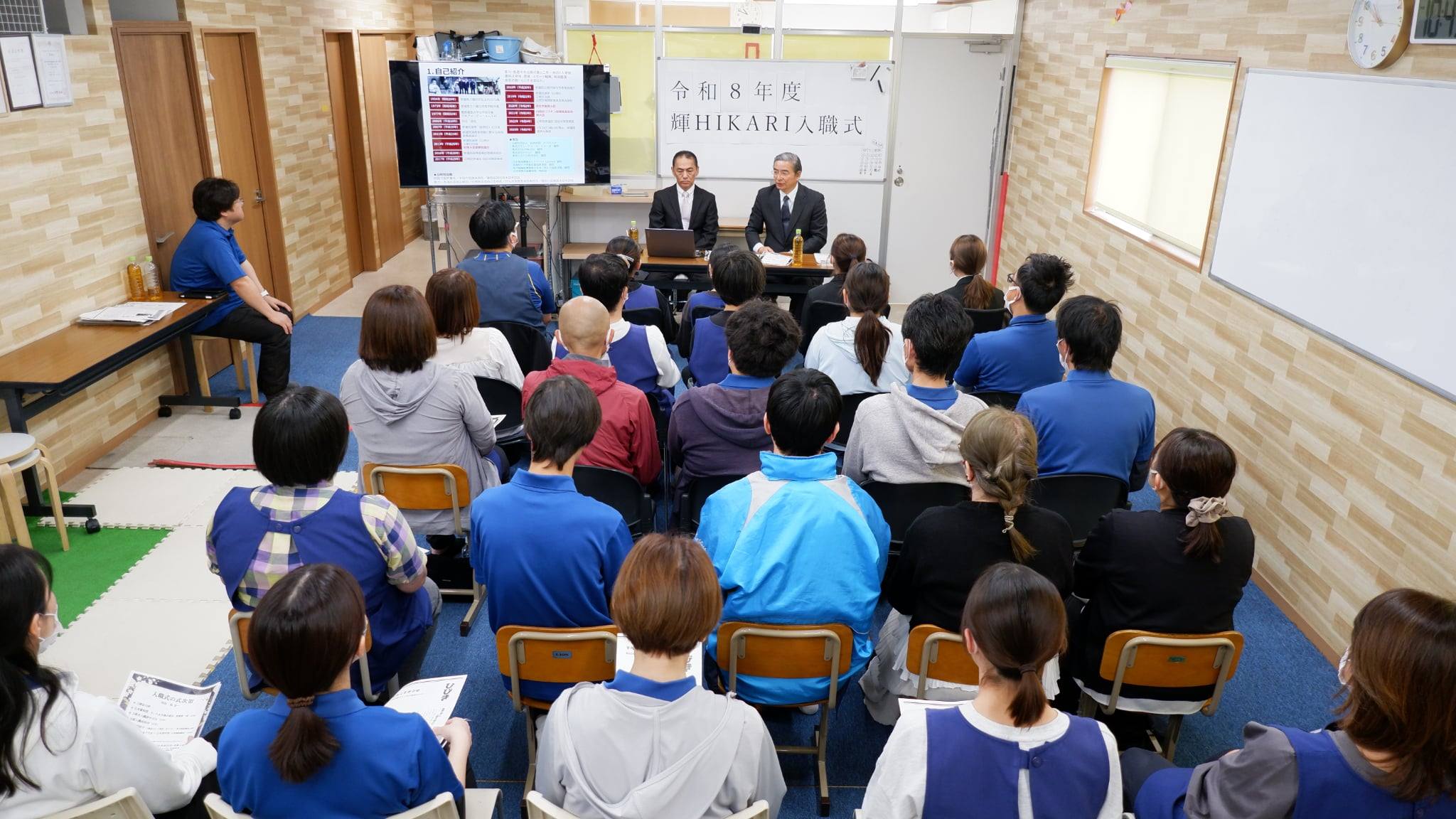 4月より2名の新入職員が大学卒業 特定非営利活動法人輝HIKARIに入職。本日はほぼ全員の職員の皆様が集っての入職式です。