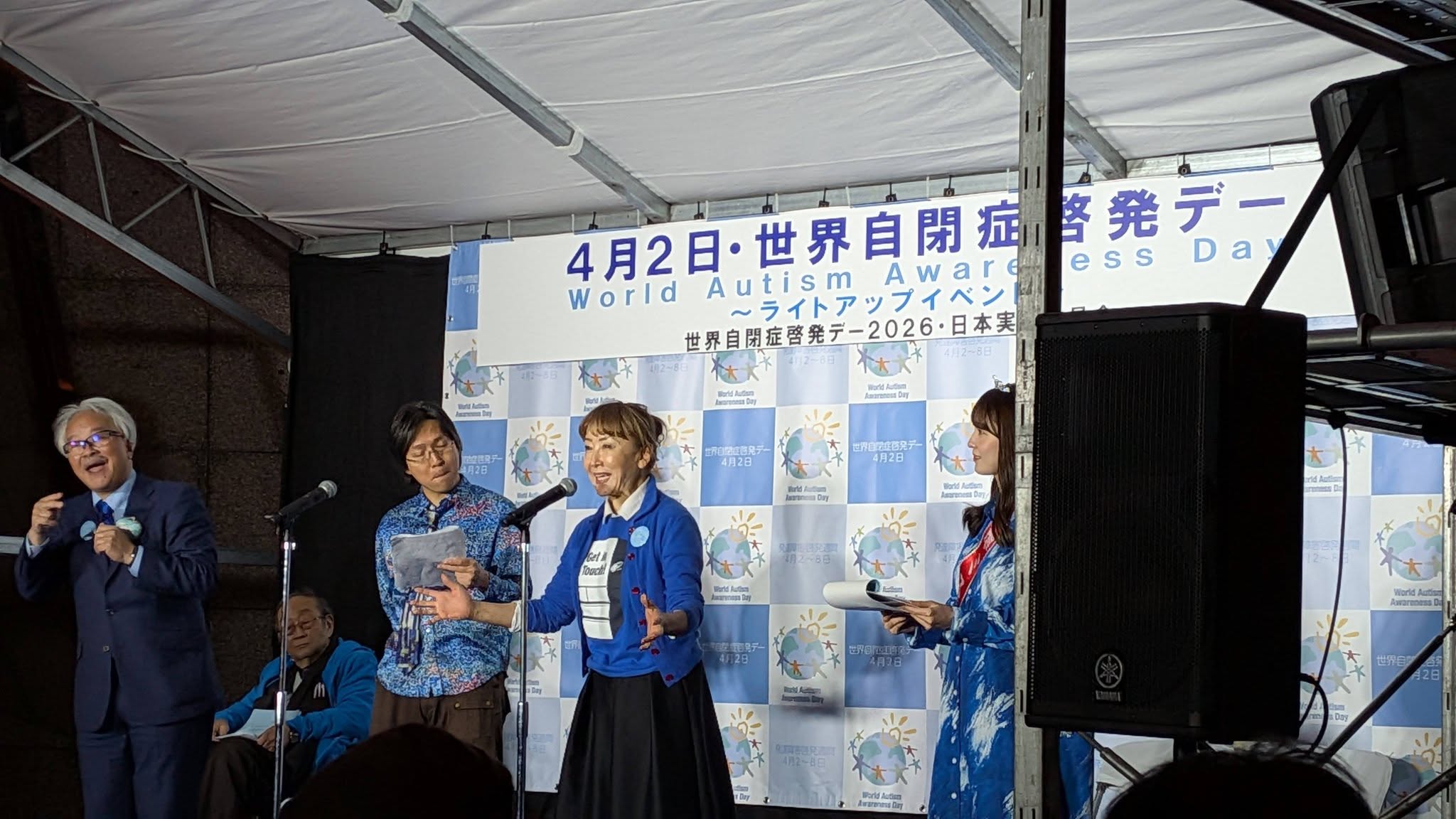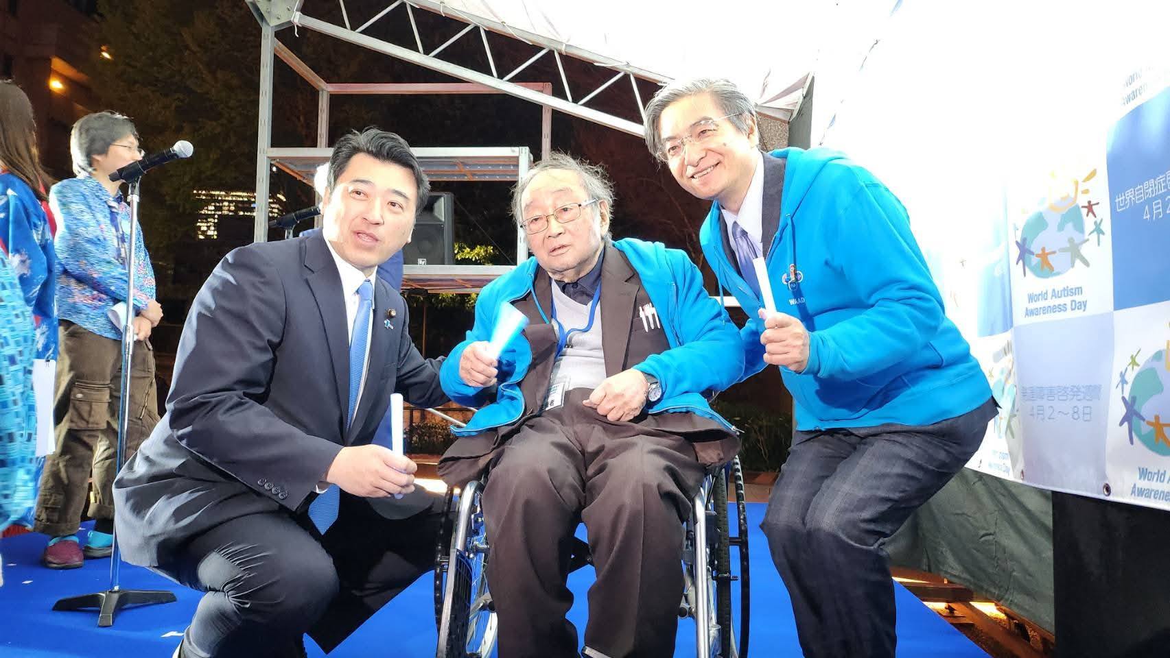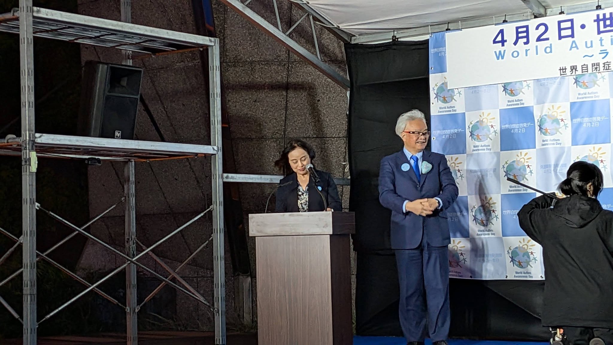 発達障害の支援を考える議員連盟 野田会長、三浦事務局長(公明党参議院議員)が点灯式に登壇。