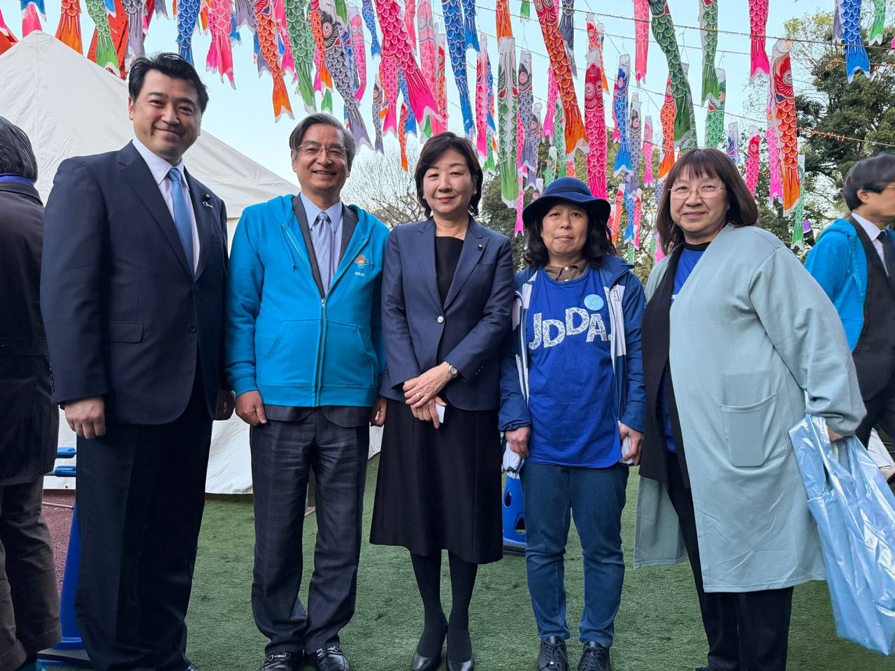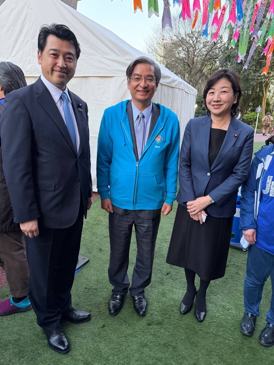 点灯式後、市川委員長と三浦さんとの写真やヘラルボニー松田崇弥社長。発達障害当事者協会 事務局長の嘉津山具子さんと副代表の金子磨矢子さん。Get in touch代表の東ちづるさん。等々。大勢の皆さんとの写真を撮らせていただきました。