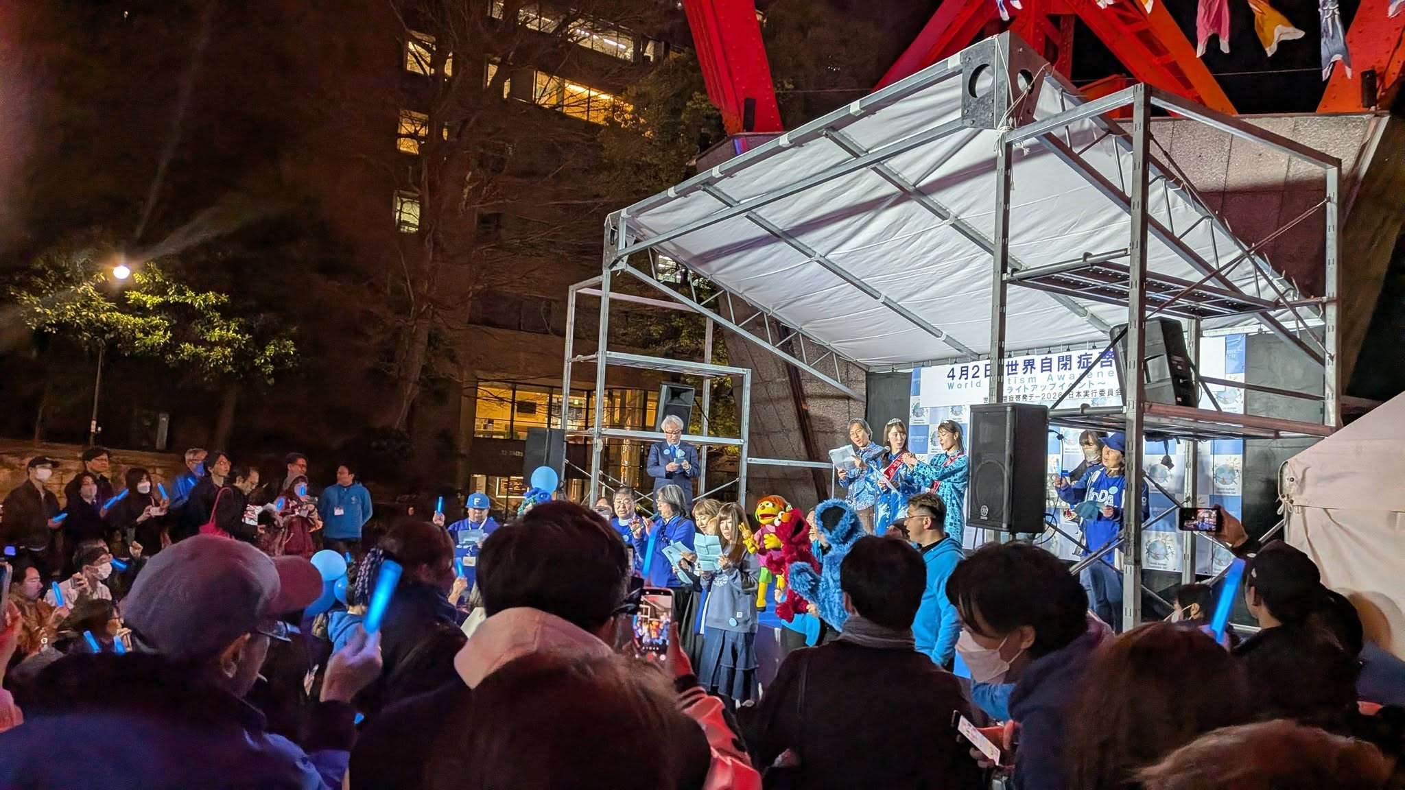 夜の点灯式に日本発達障害ネットワーク(JDDネット)顧問として出席。