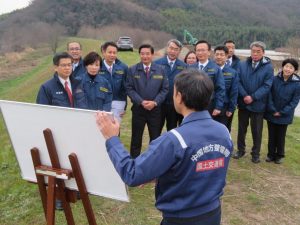 西日本豪雨災害被災地・倉敷市を視察⑤高梁川・小田川合流点付け替え工事現場(新たな防災・減災・復興政策検討委員会)(岡山県倉敷市)
